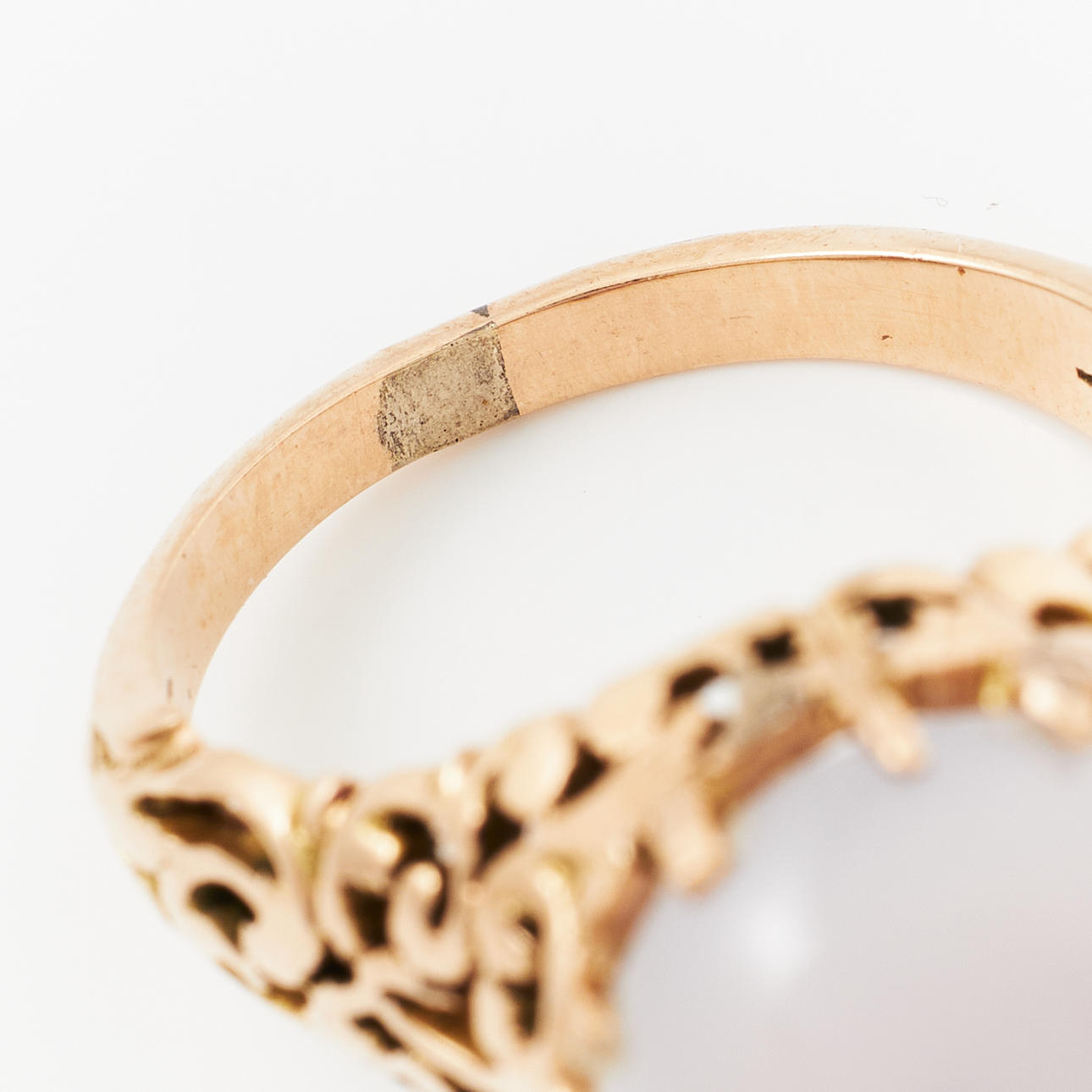 Ring rail with solder mark, moonstone assembly with traces of glue.