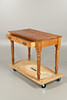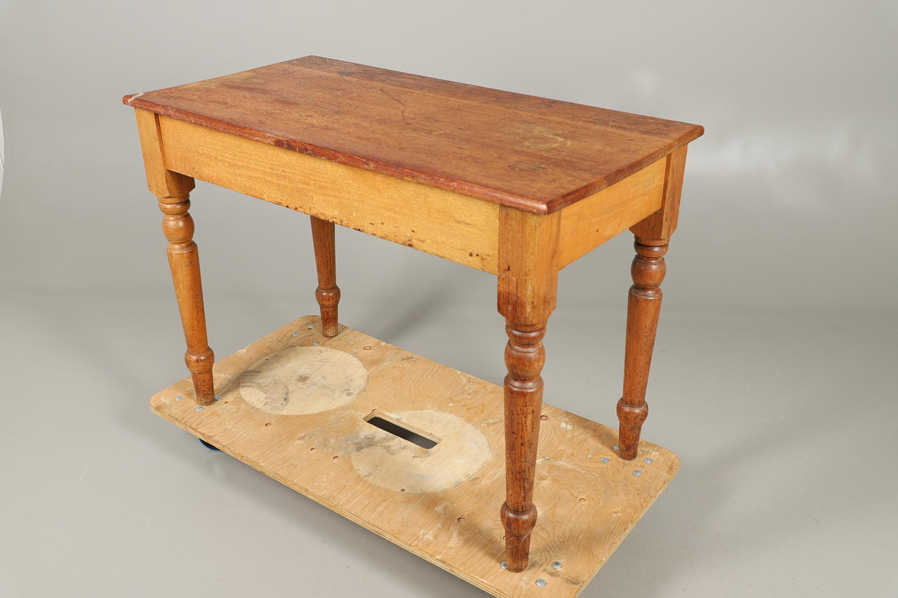 With turned legs, the single drawer with brass handles and locking mechanism (No key). Height 78cm x Length 107cm x Depth 55.5cm.