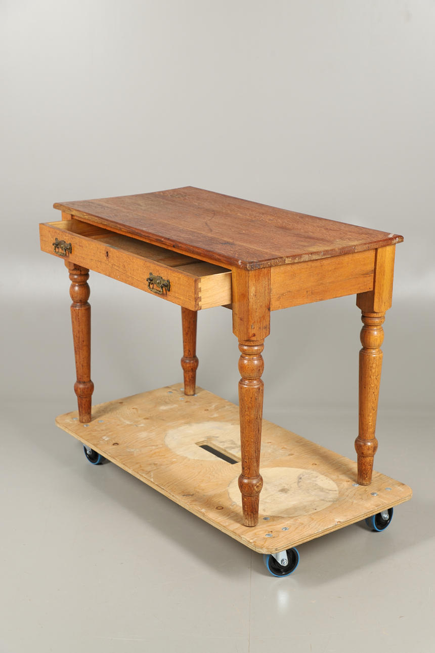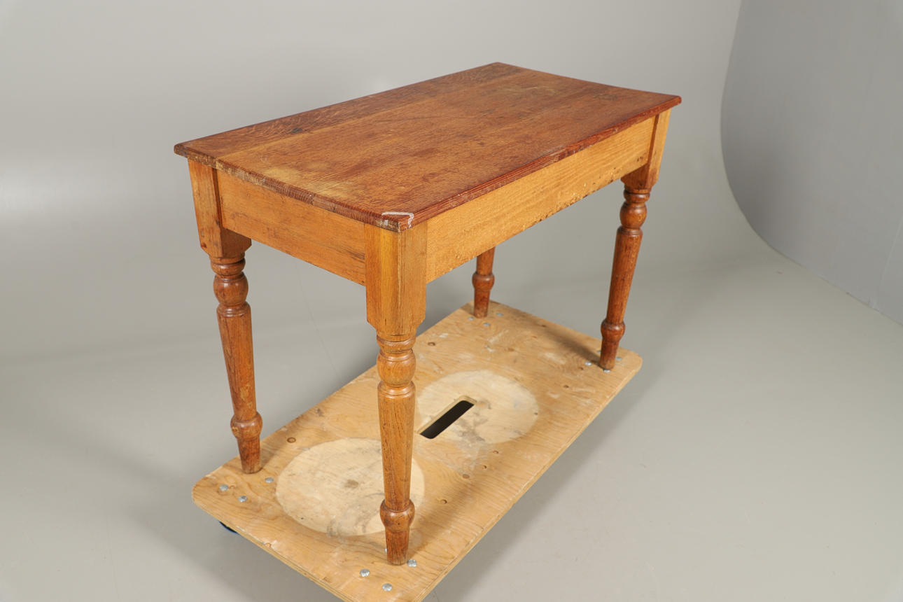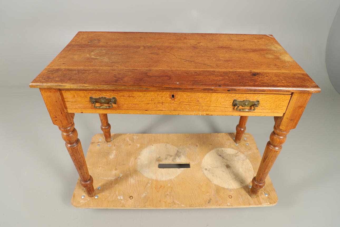 3455599. AN OAK SINGLE DRAWER TABLE.