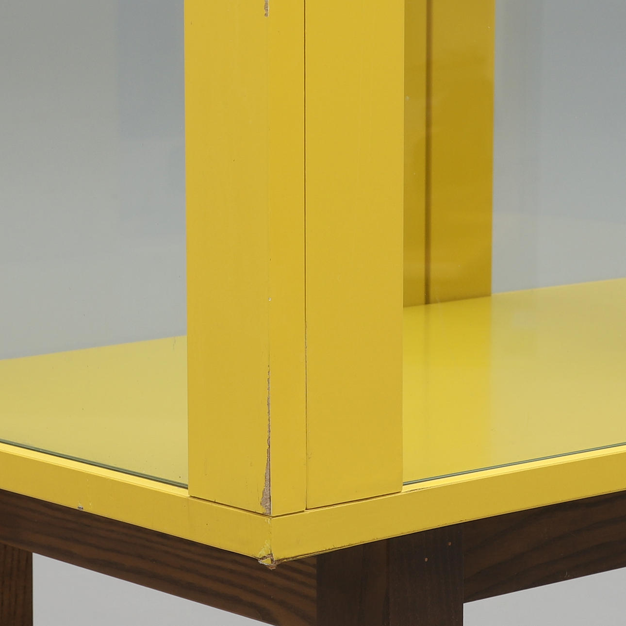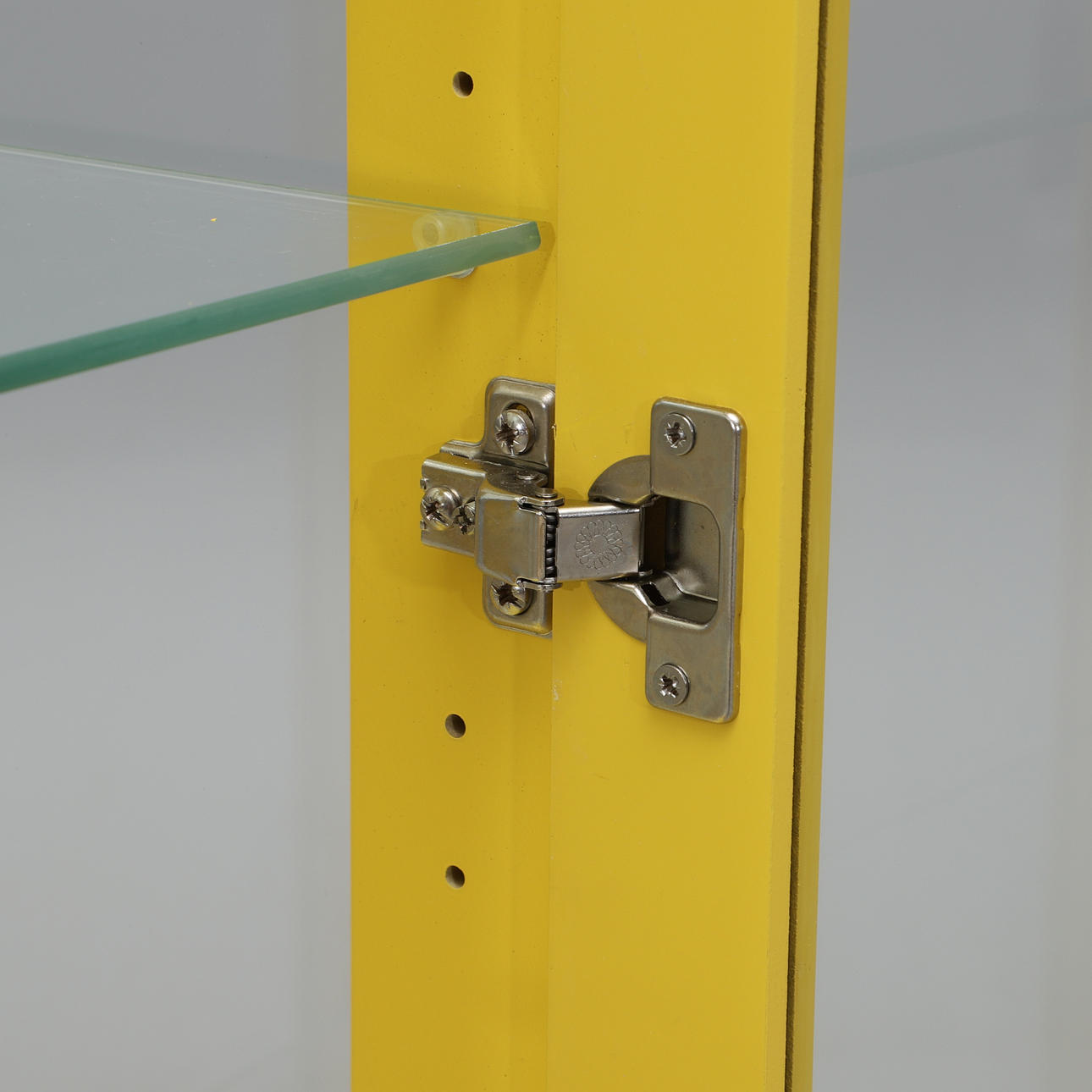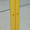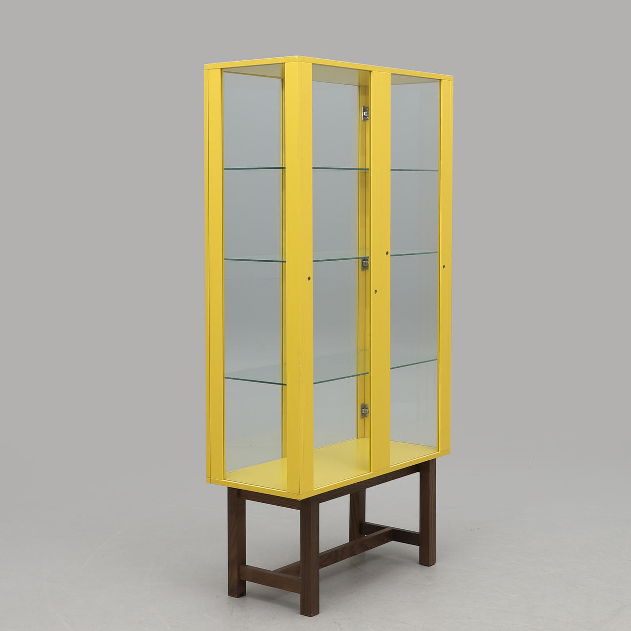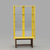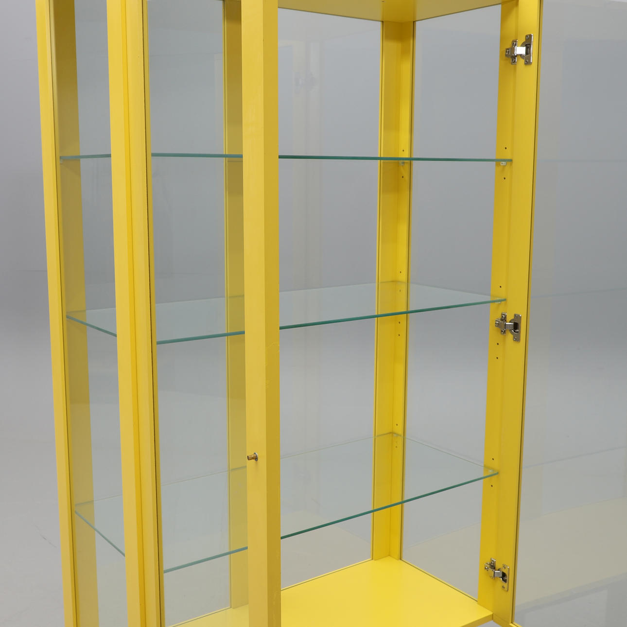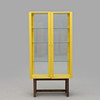 Gold lacquered with two doors. Three loose, removable glass shelves. Width 90, depth 40, height 180 cm.