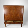 One pair of doors, three rear adjustable shelves, five drawers. Two outside boxes.
