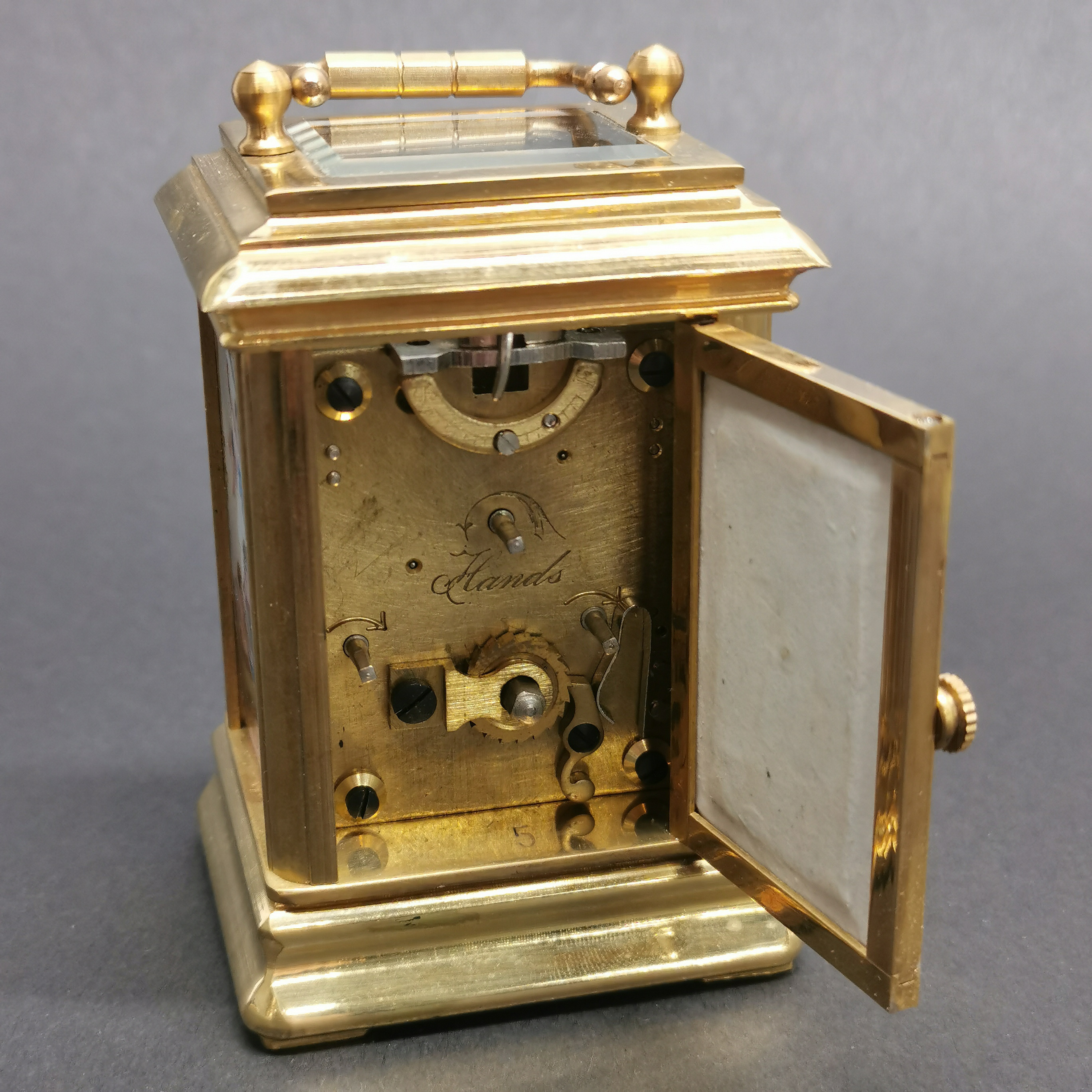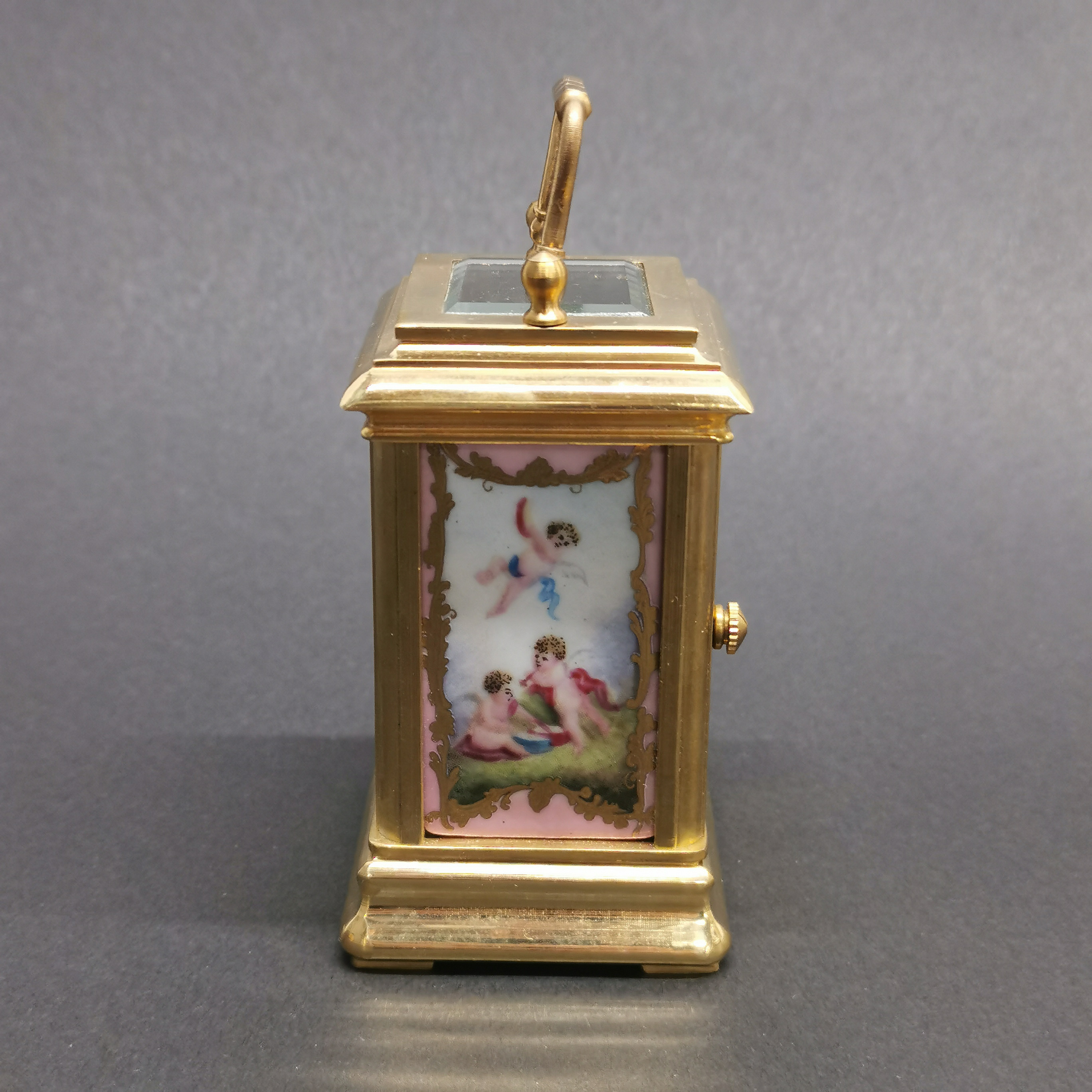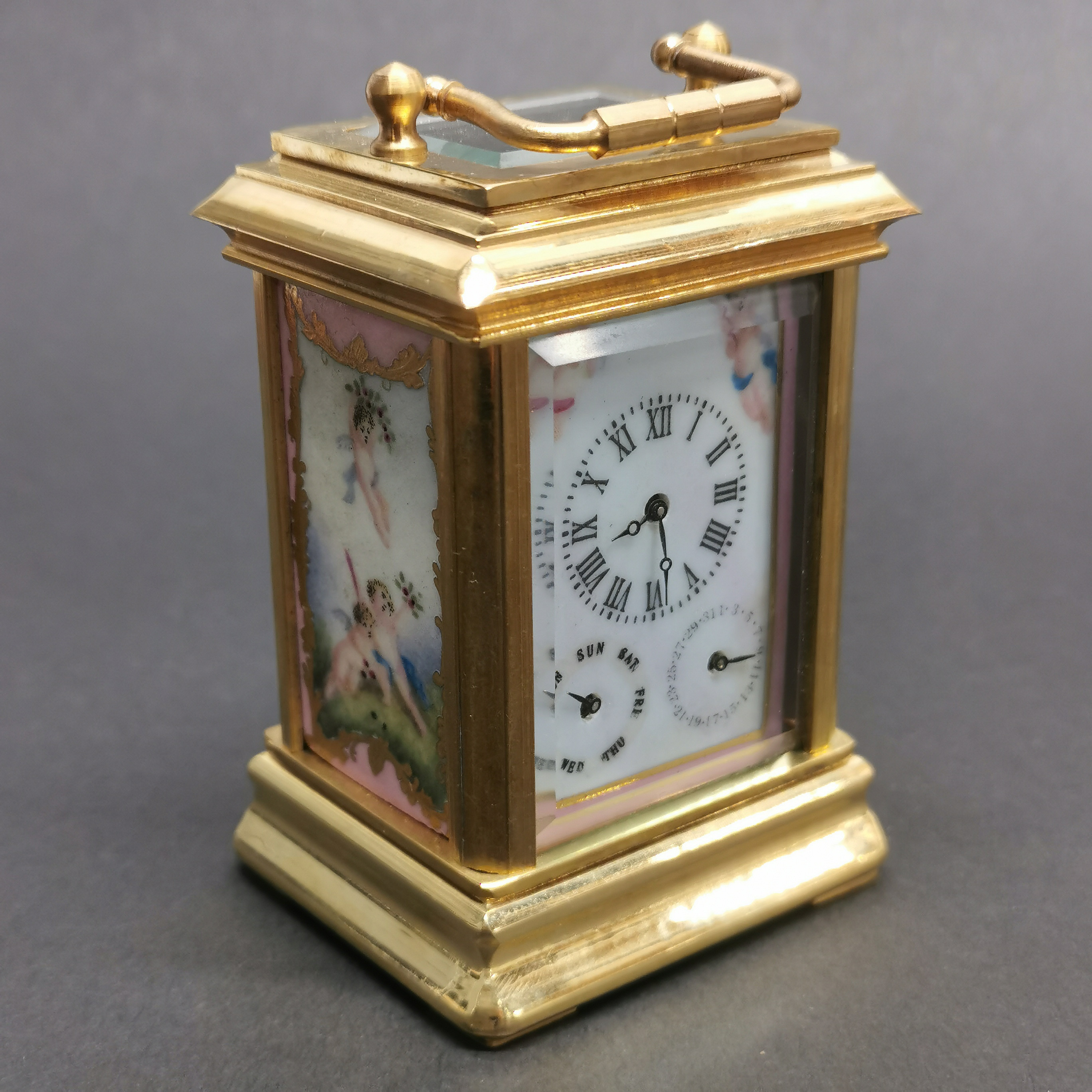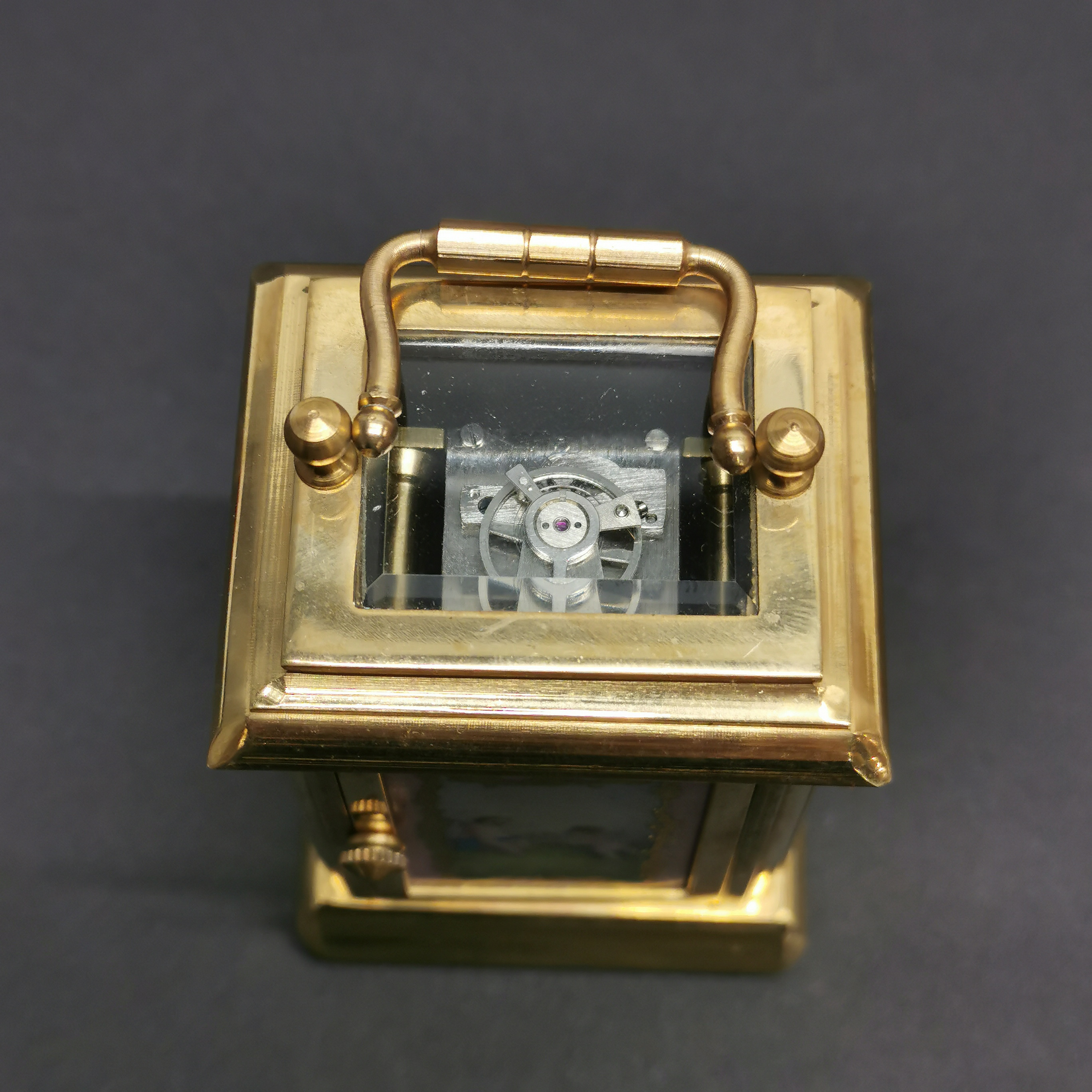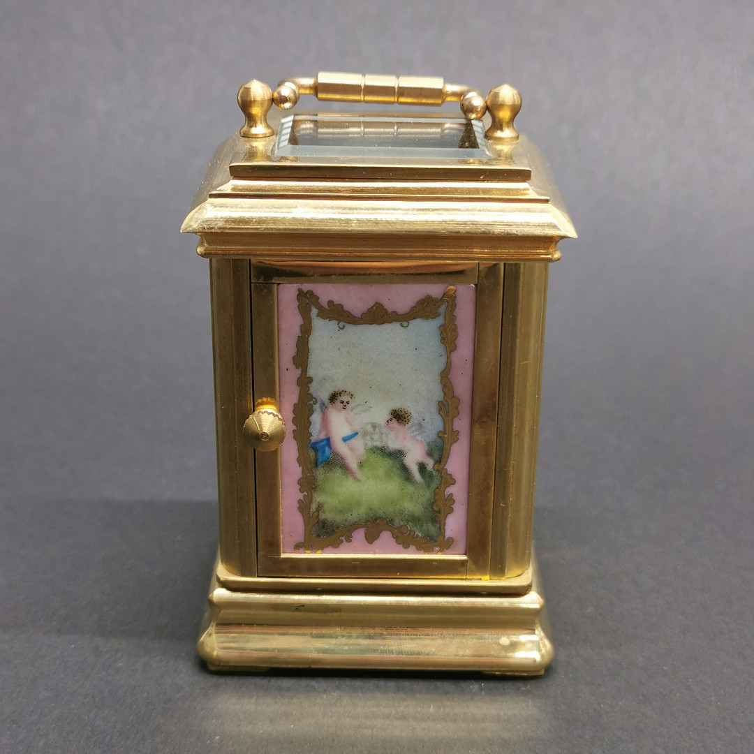 3457272. BRASS AND PORCELAIN CARRIAGE CLOCK.
