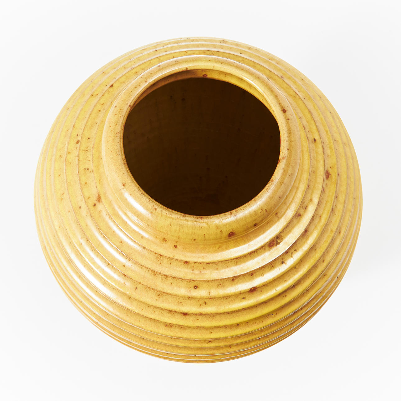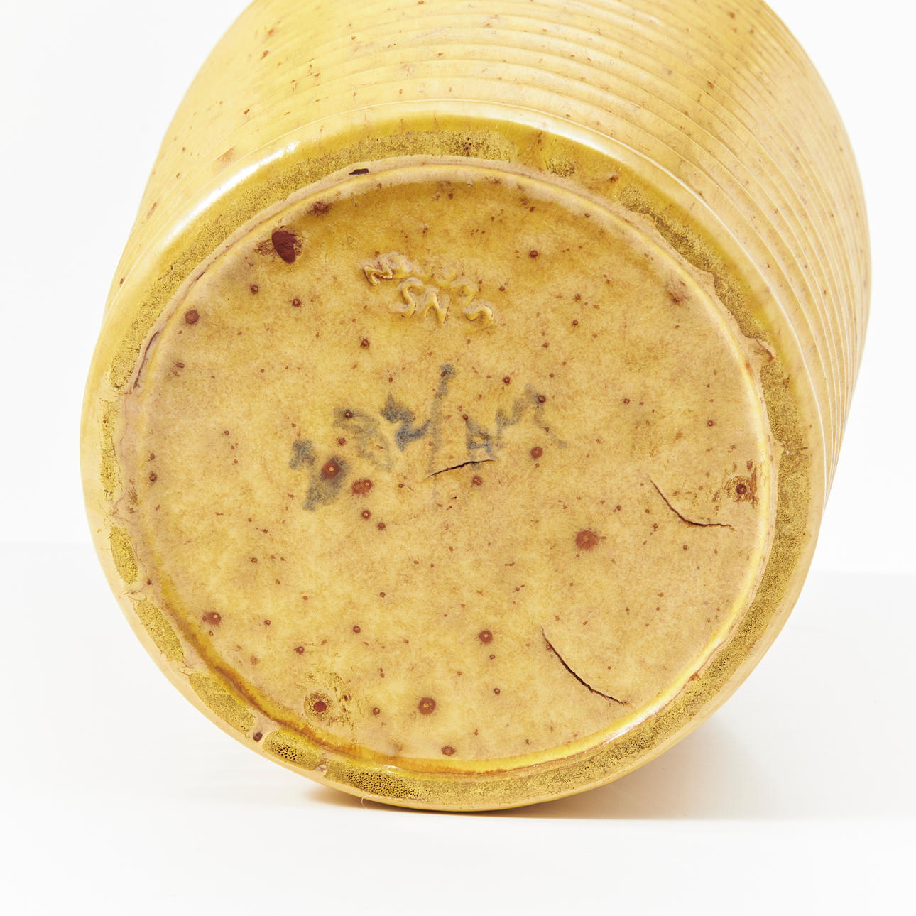 Glazed in yellow shades, decorated with ruffles, marked “Nittsjö Sweden 282-AM”,