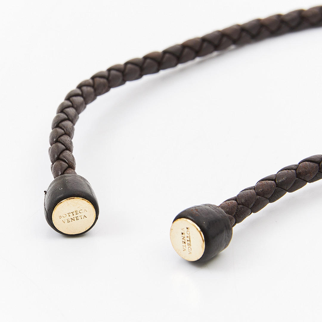 In brown braided leather, box in original included, adjustable size, total length approx. 226cm.