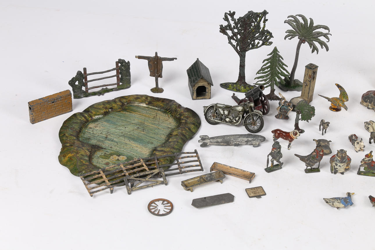 A collection of loose Britains and other lead figures, to include Cadbury Cococub animals, soldiers, vehicles, children, farm and zoo animals, buildings and scenery. (qty).