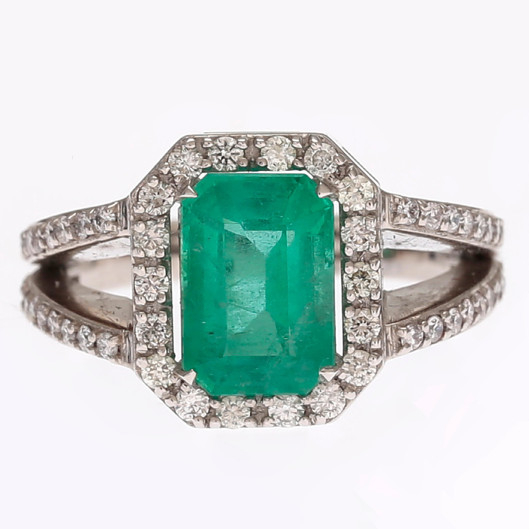 107. 3462391. Emerald and diamonds ring.
