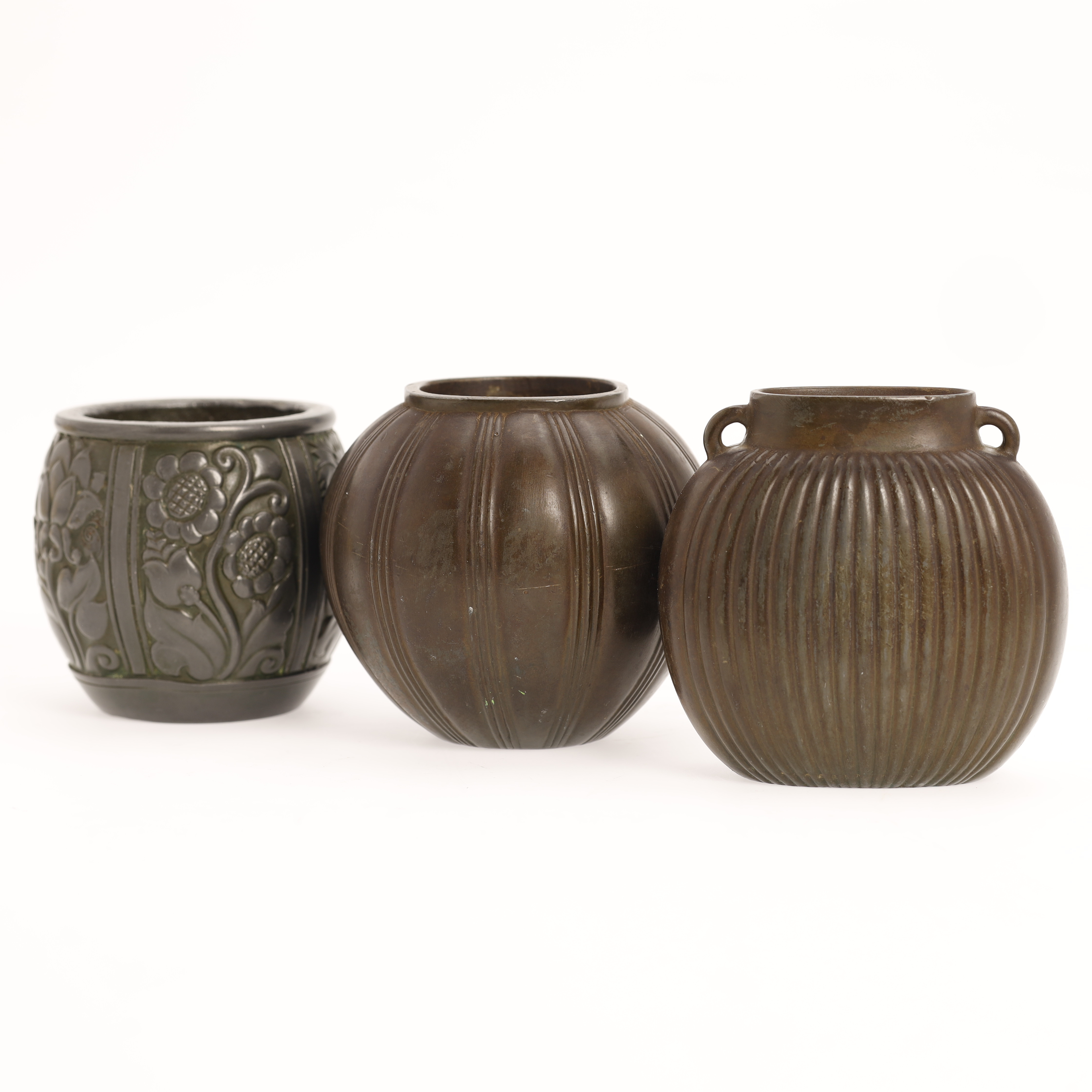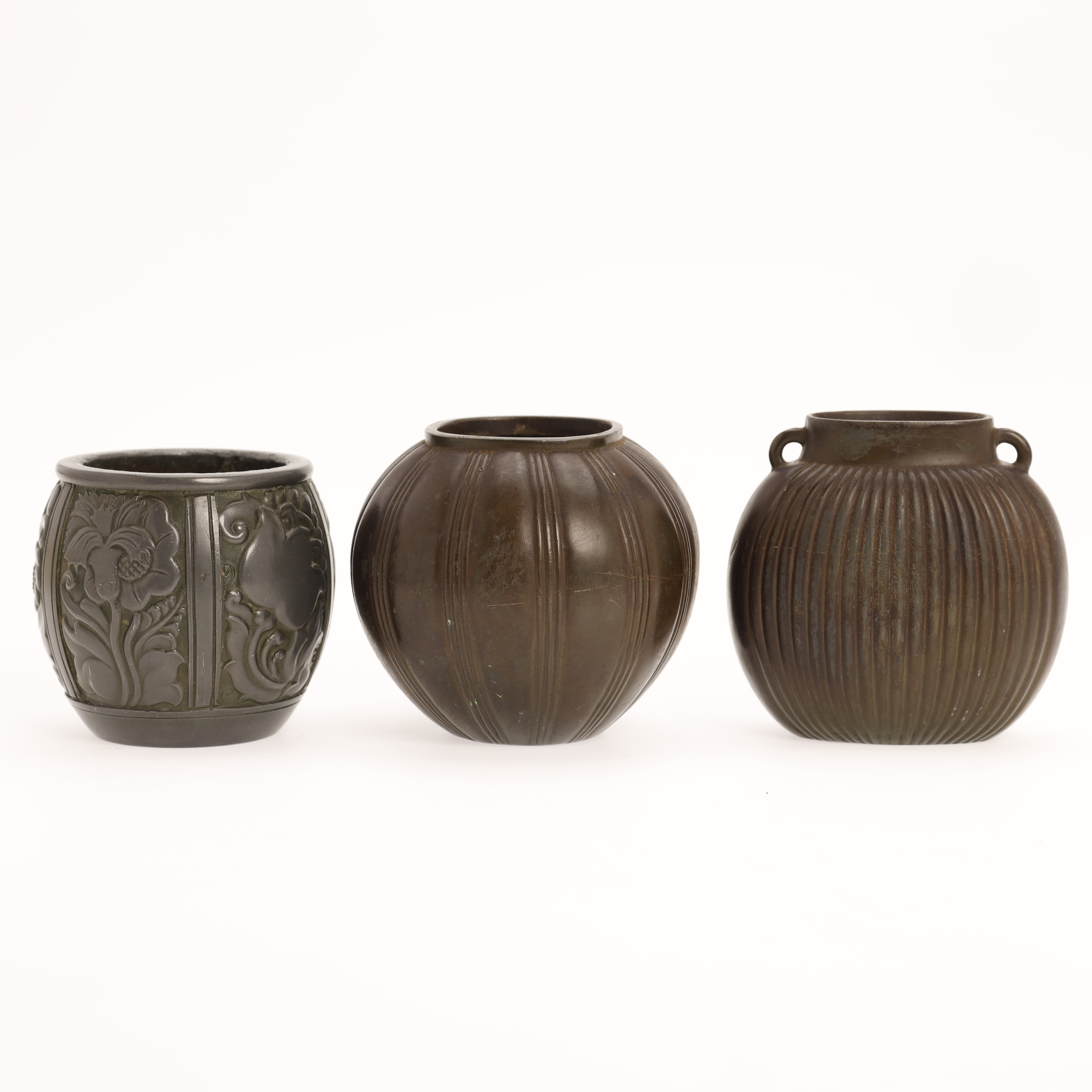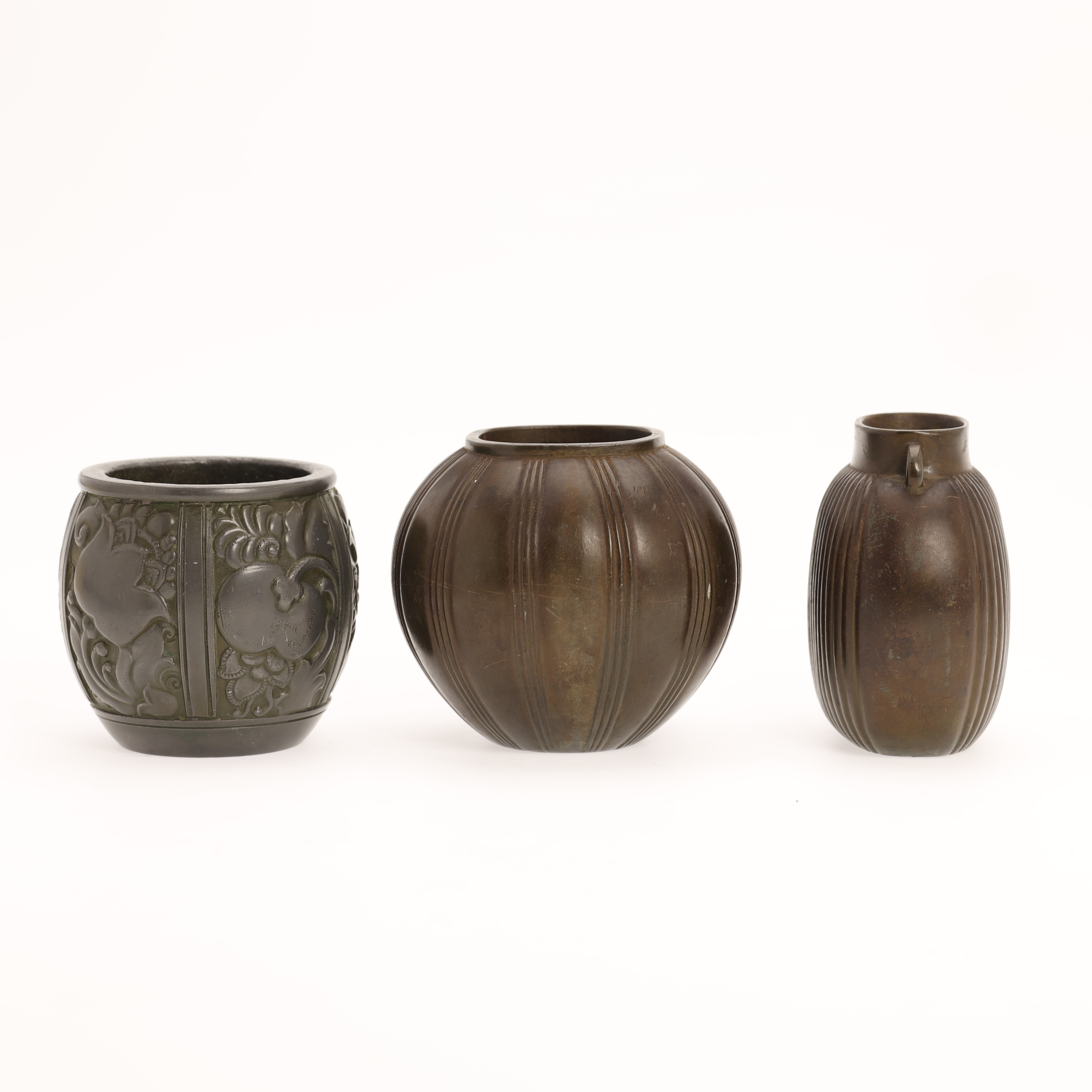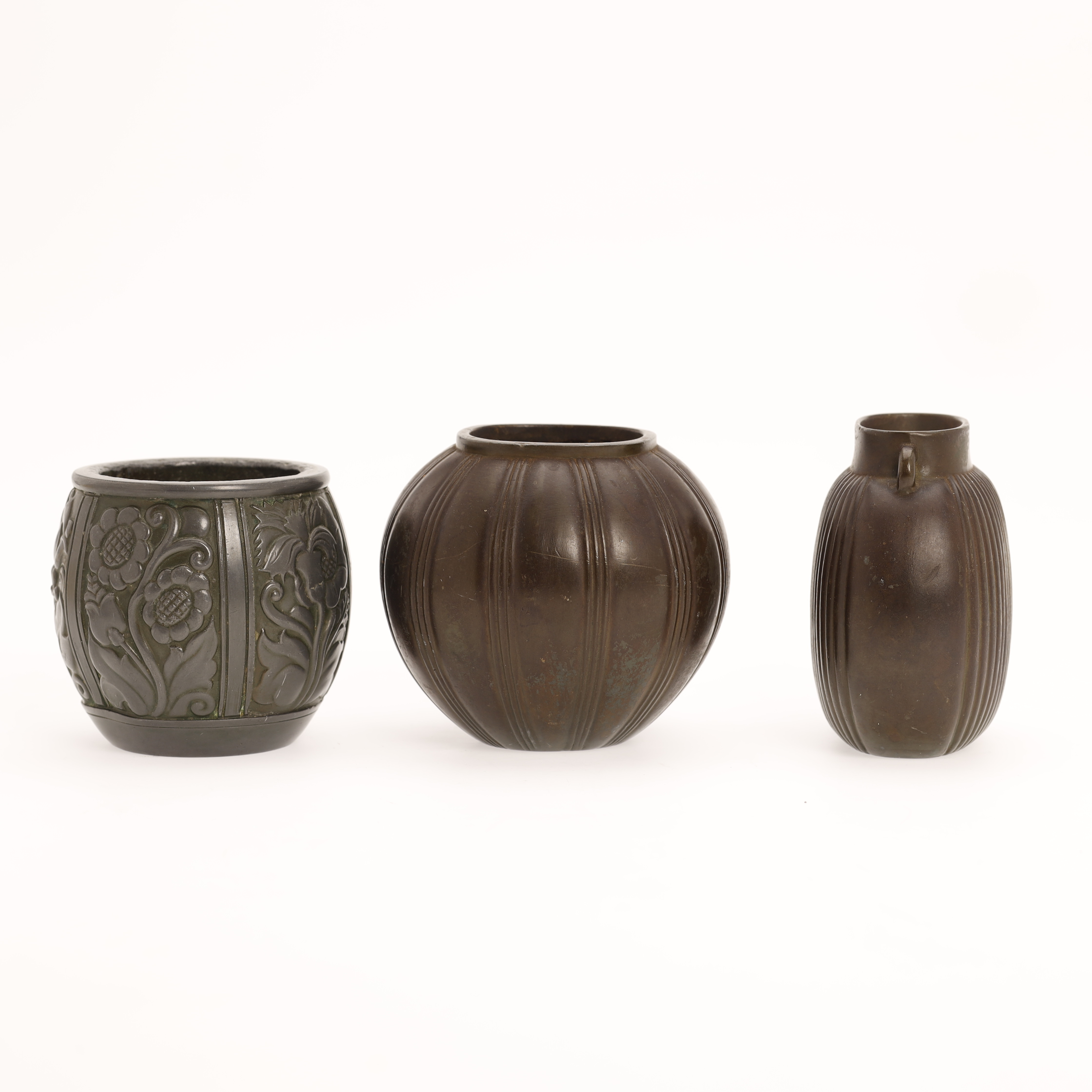 3463832. JUST ANDERSEN 1884-1943. Three smaller vases of disco metal (3).