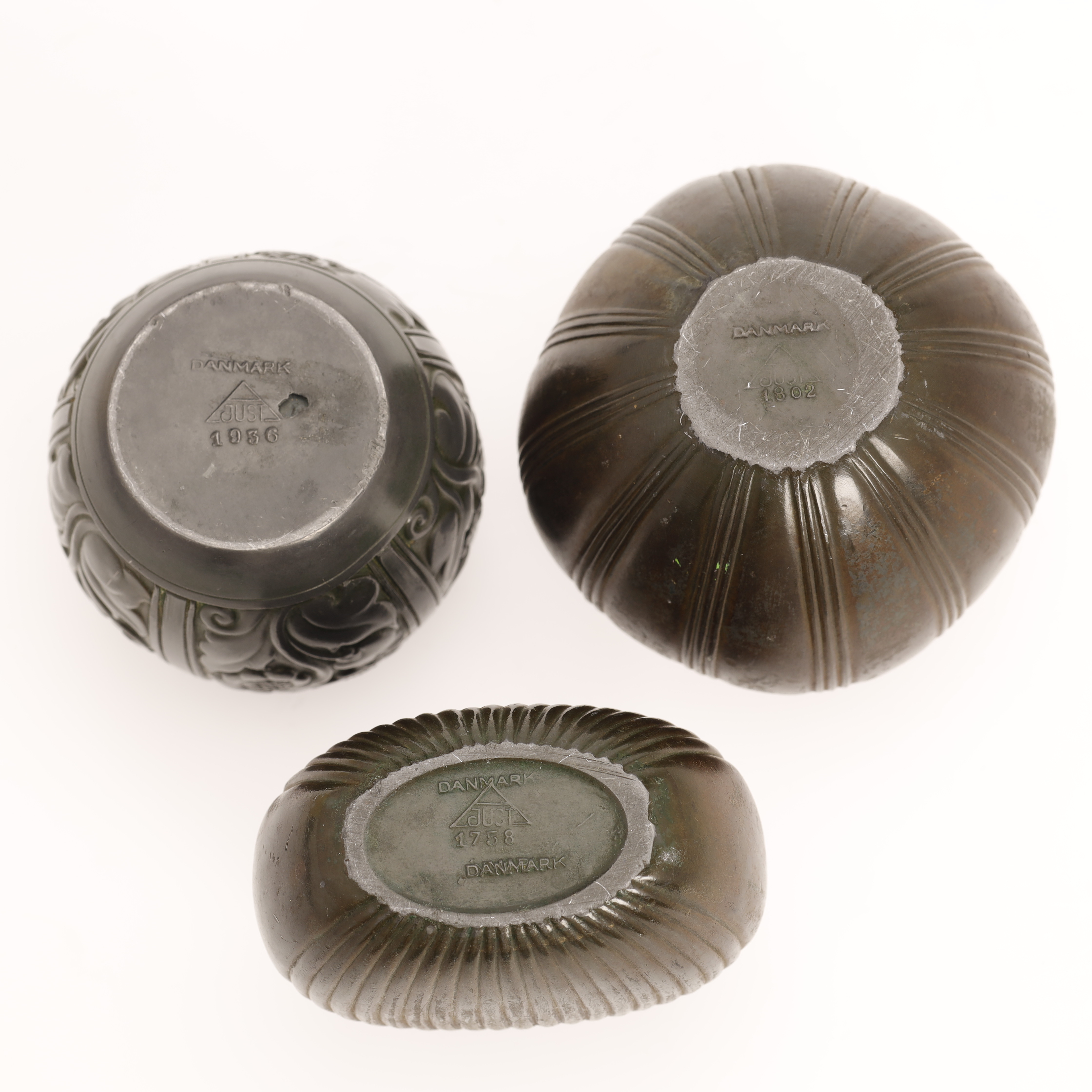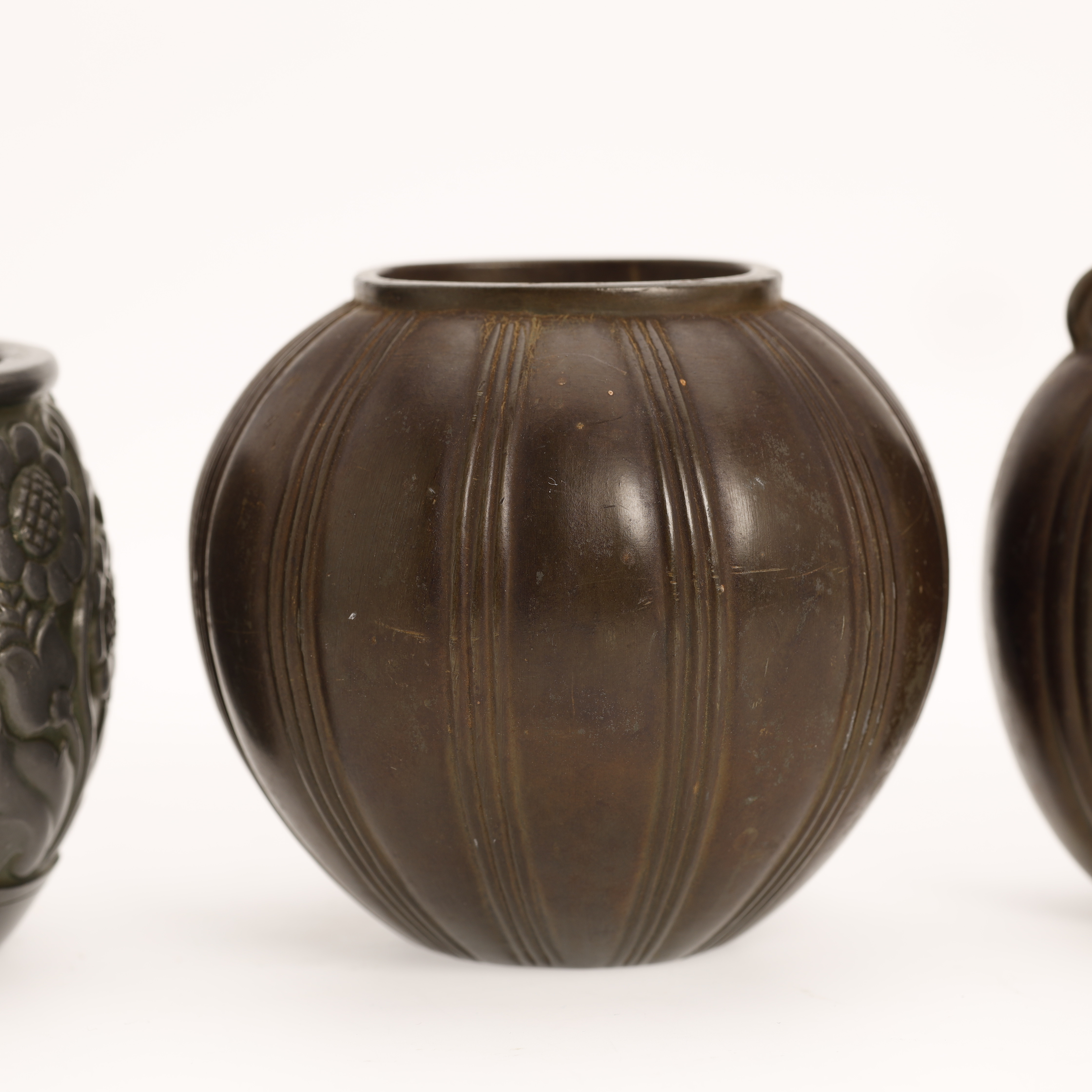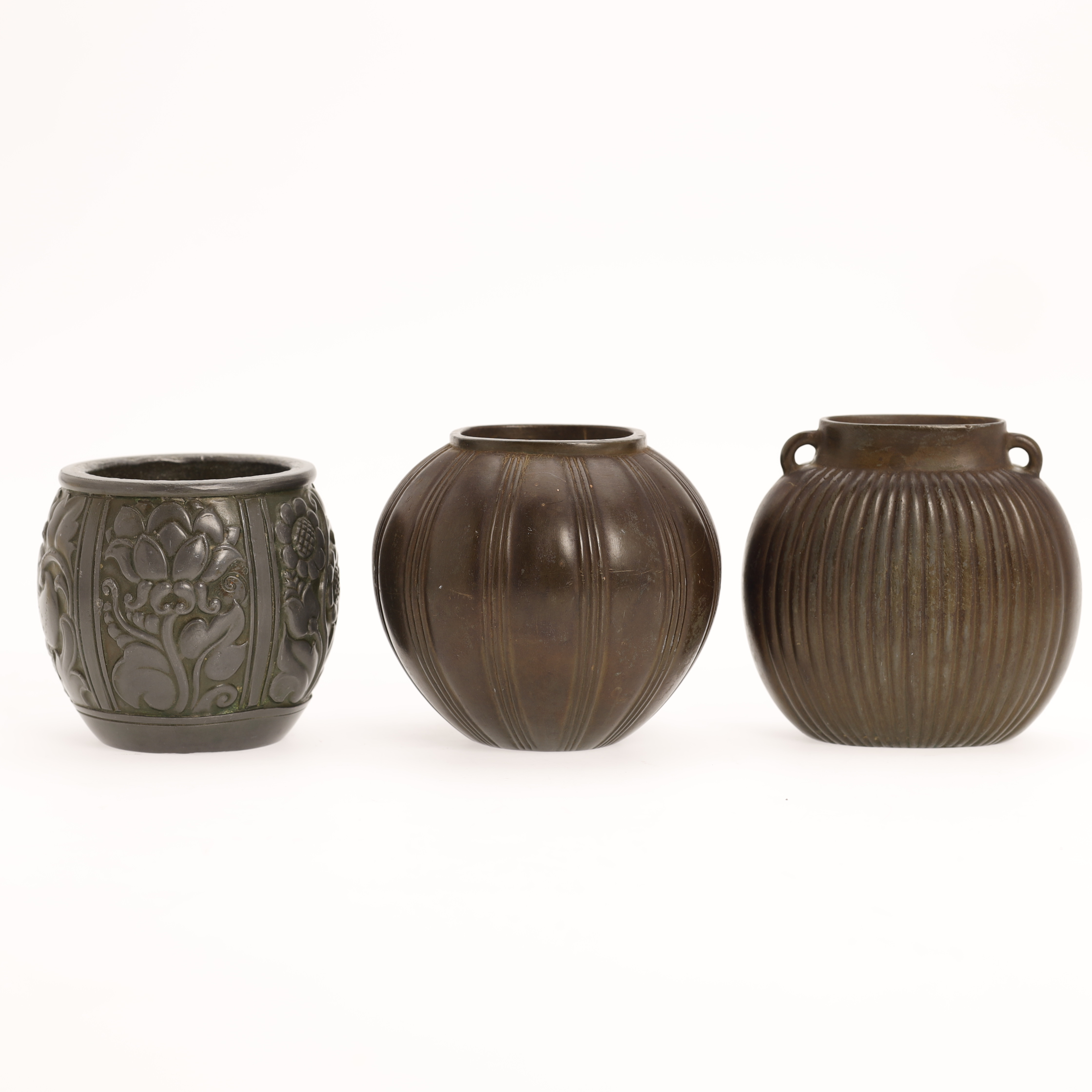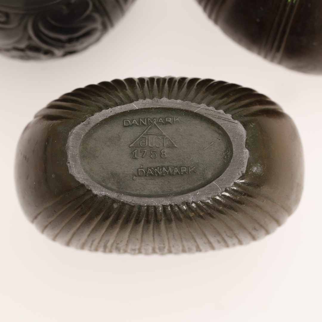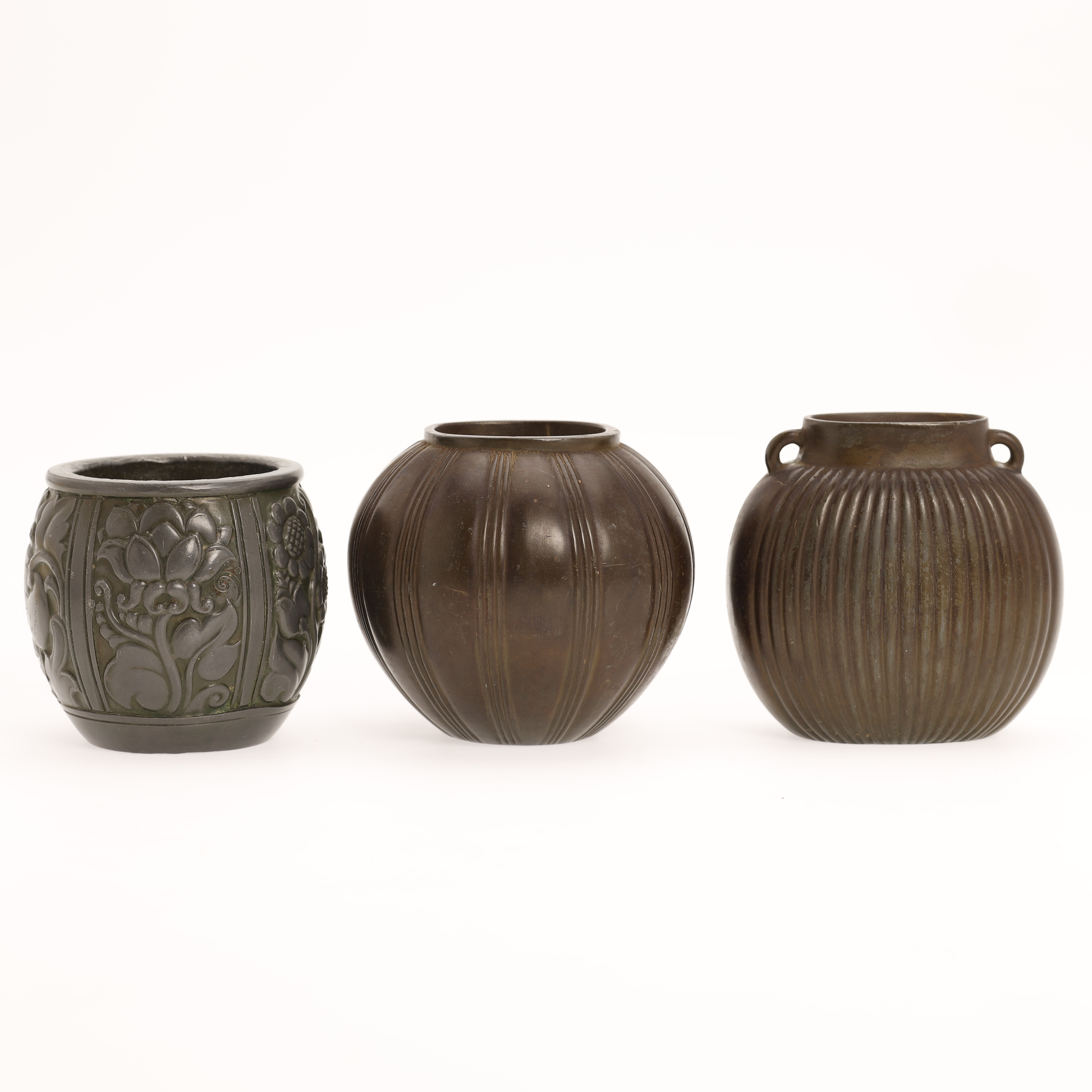 3463832. JUST ANDERSEN 1884-1943. Three smaller vases of disco metal (3).