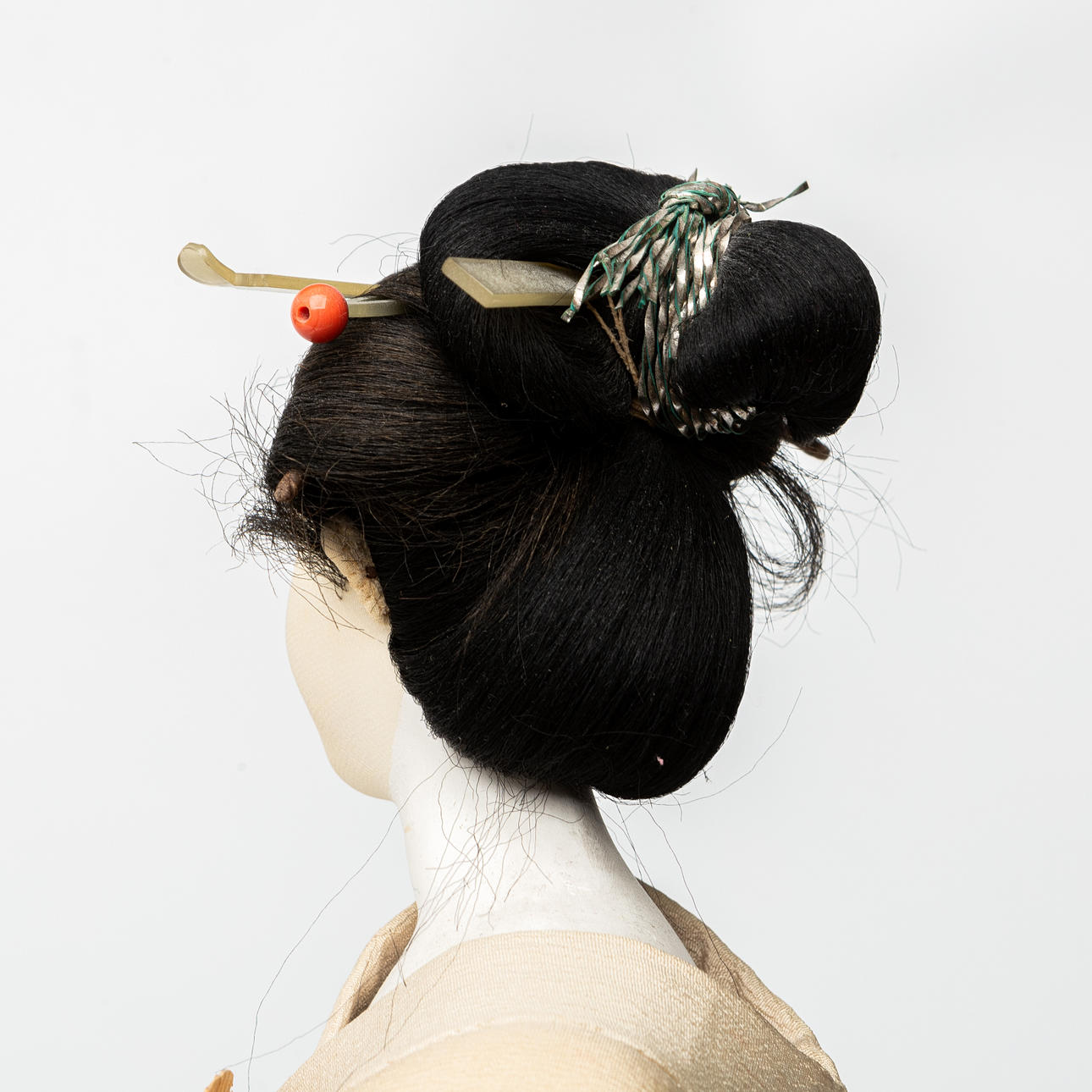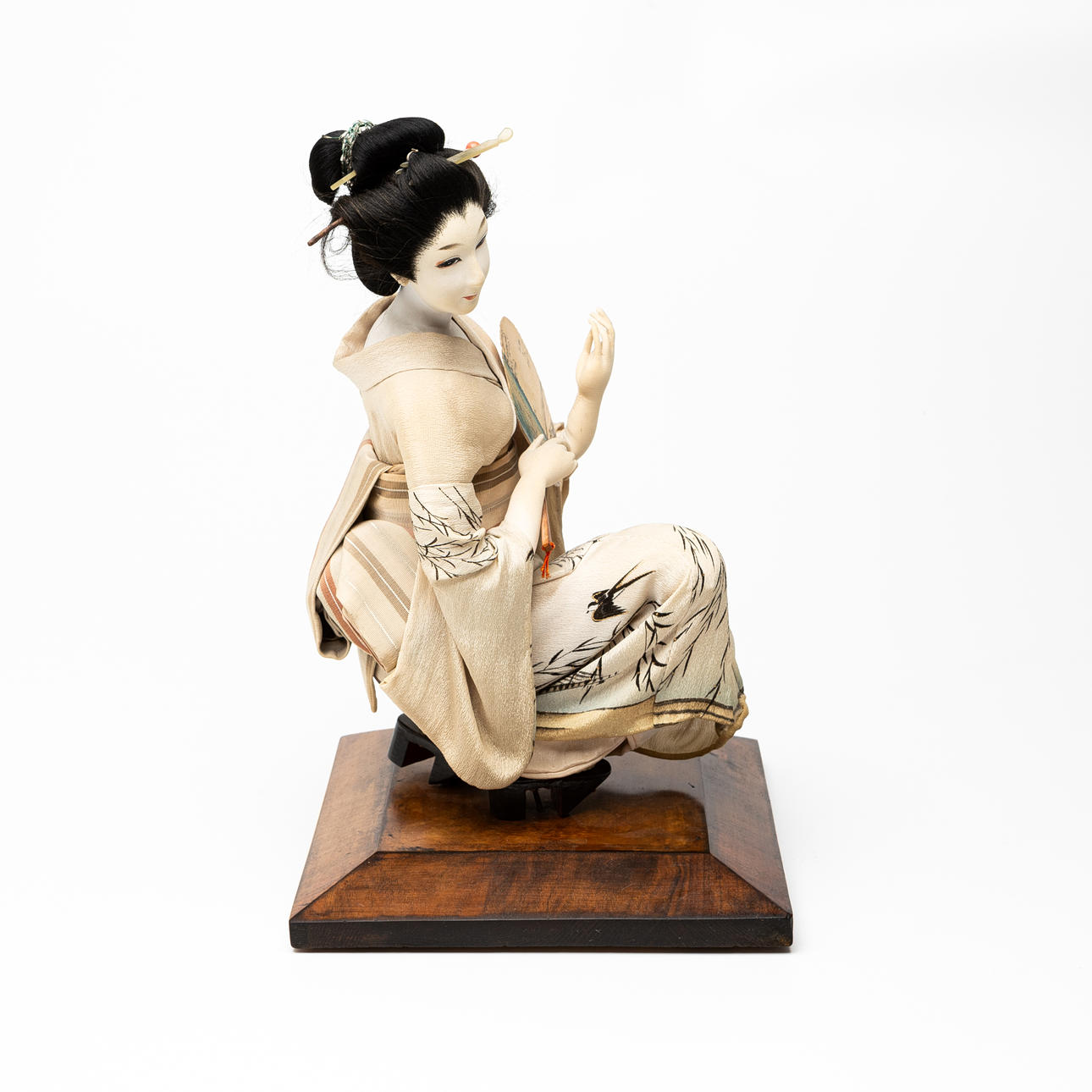 Depicting an elegant geisha, height including wooden plinth, 41 cm.
