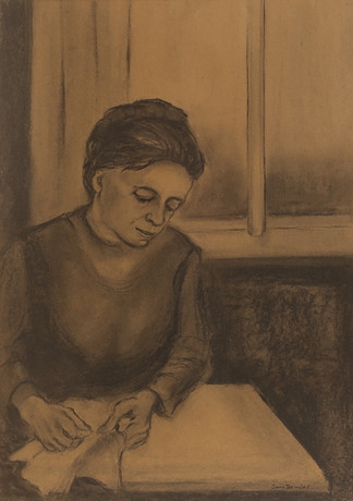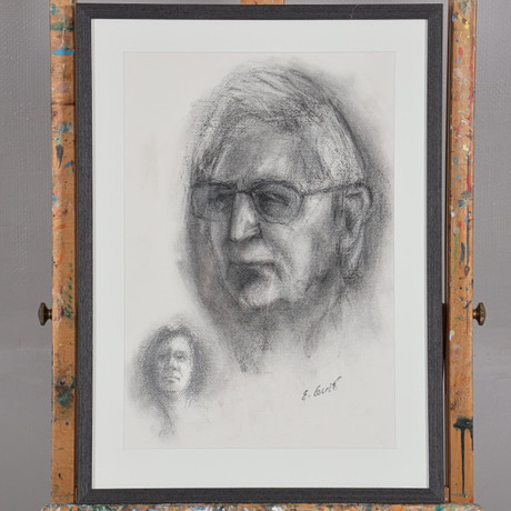 ACKE ÅSLUND. Horses, charcoal drawing on paper, monogram signed, 1920.