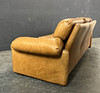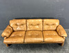 Upholstered in brown leather.