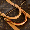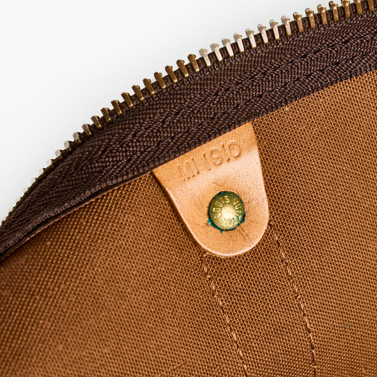 Monogram canvas with details in leather and gold-colored metal. Interior brown canvas. LOUIS VUITTON PARIS made in france, marked MI1910. Approx. 55x24 cm, height approx. 28 cm.