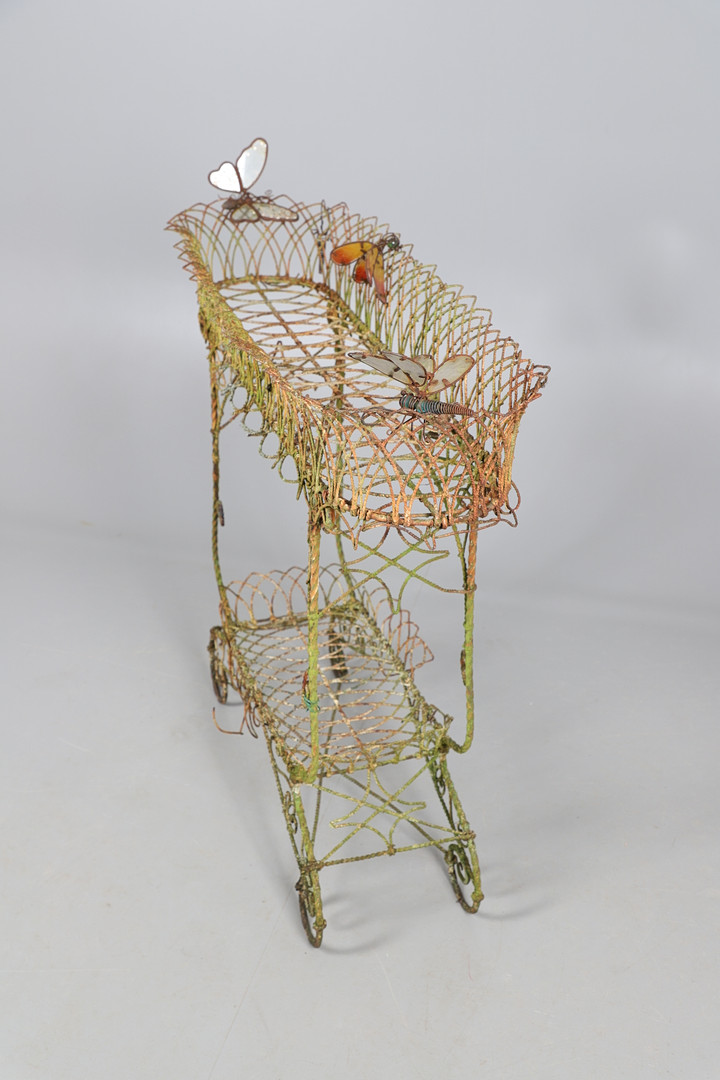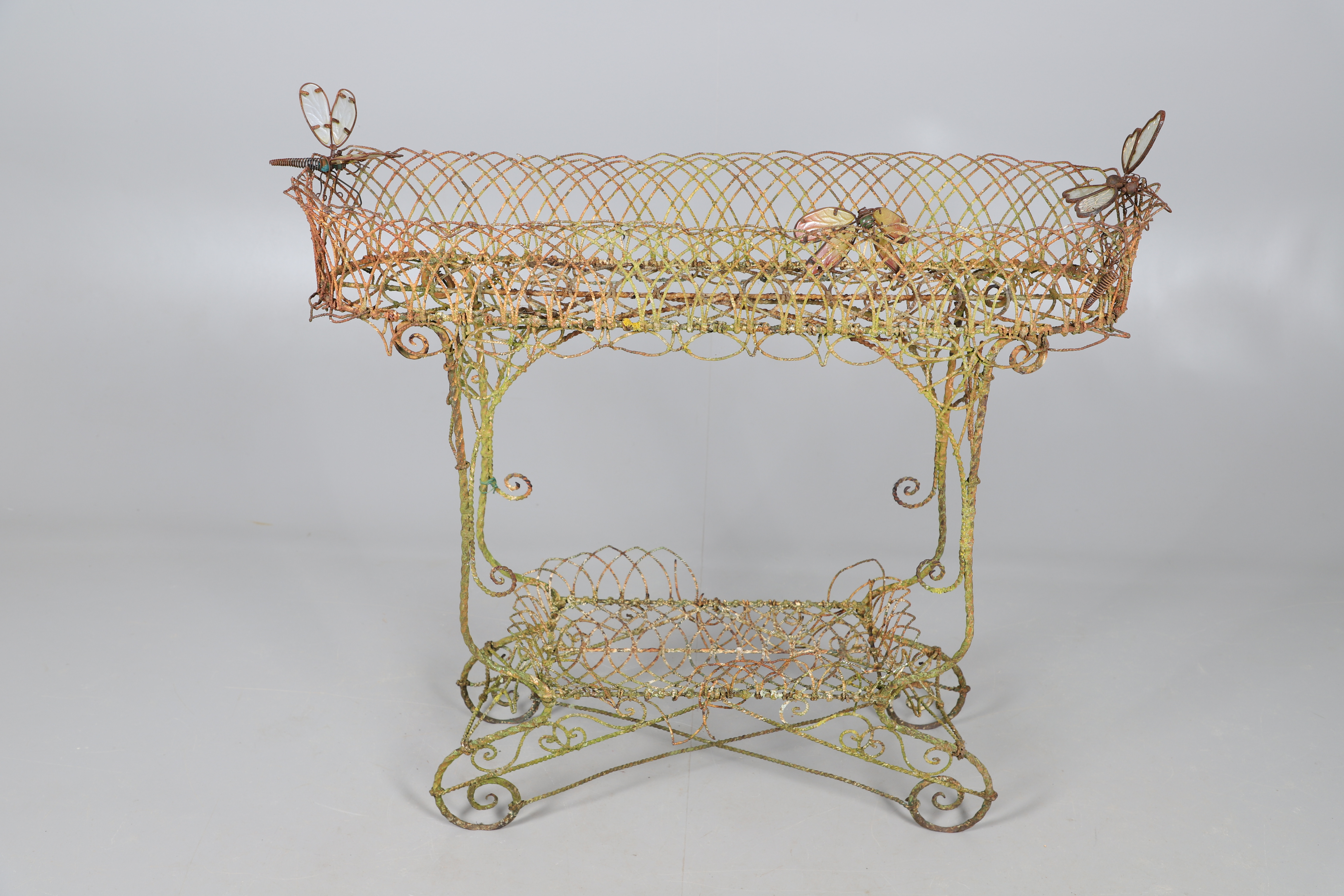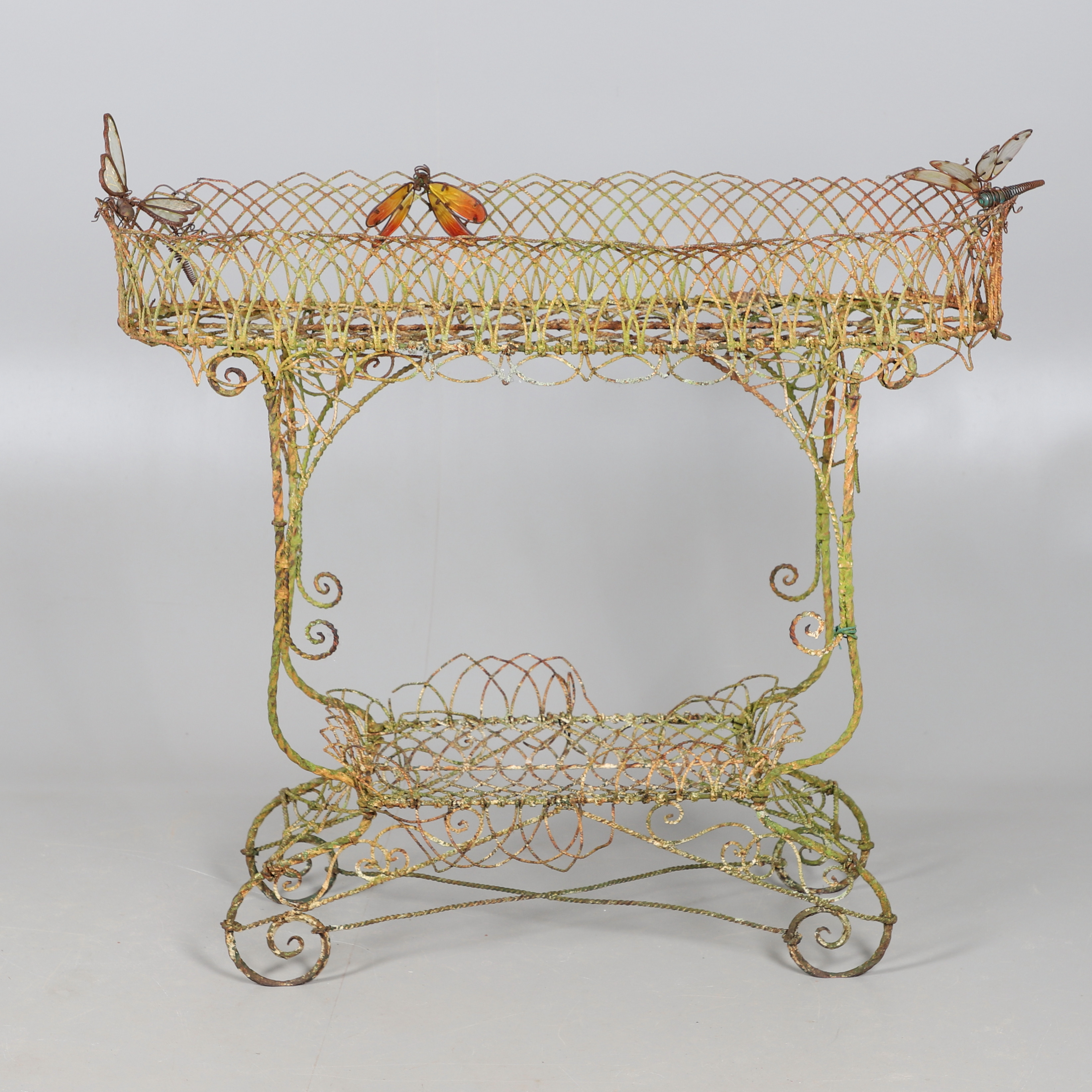 3469745. A VICTORIAN WIREWORK CONSERVATORY PLANT STAND.