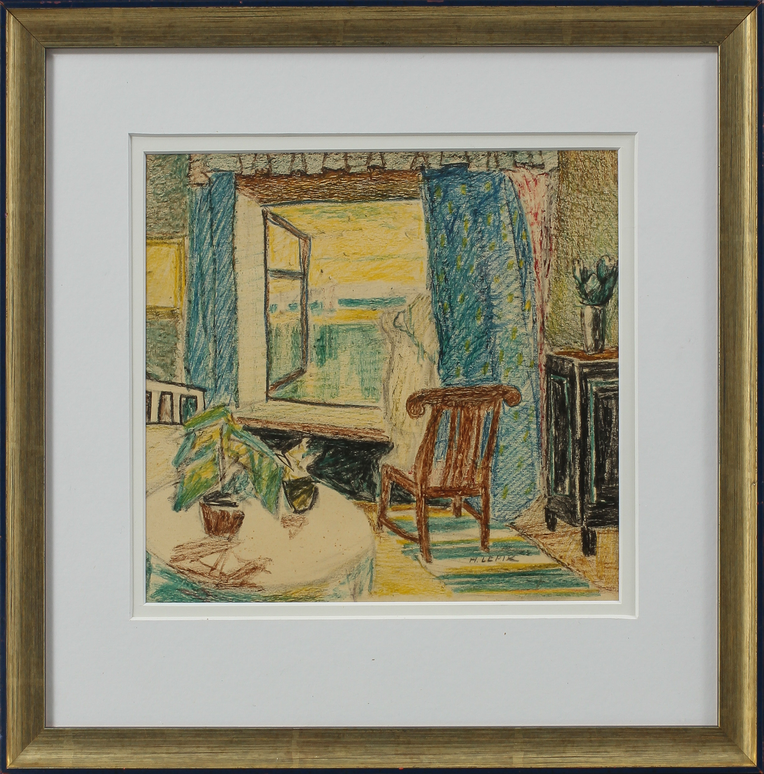 346981. HUGO LEPIK. Interior, pastel, signed.