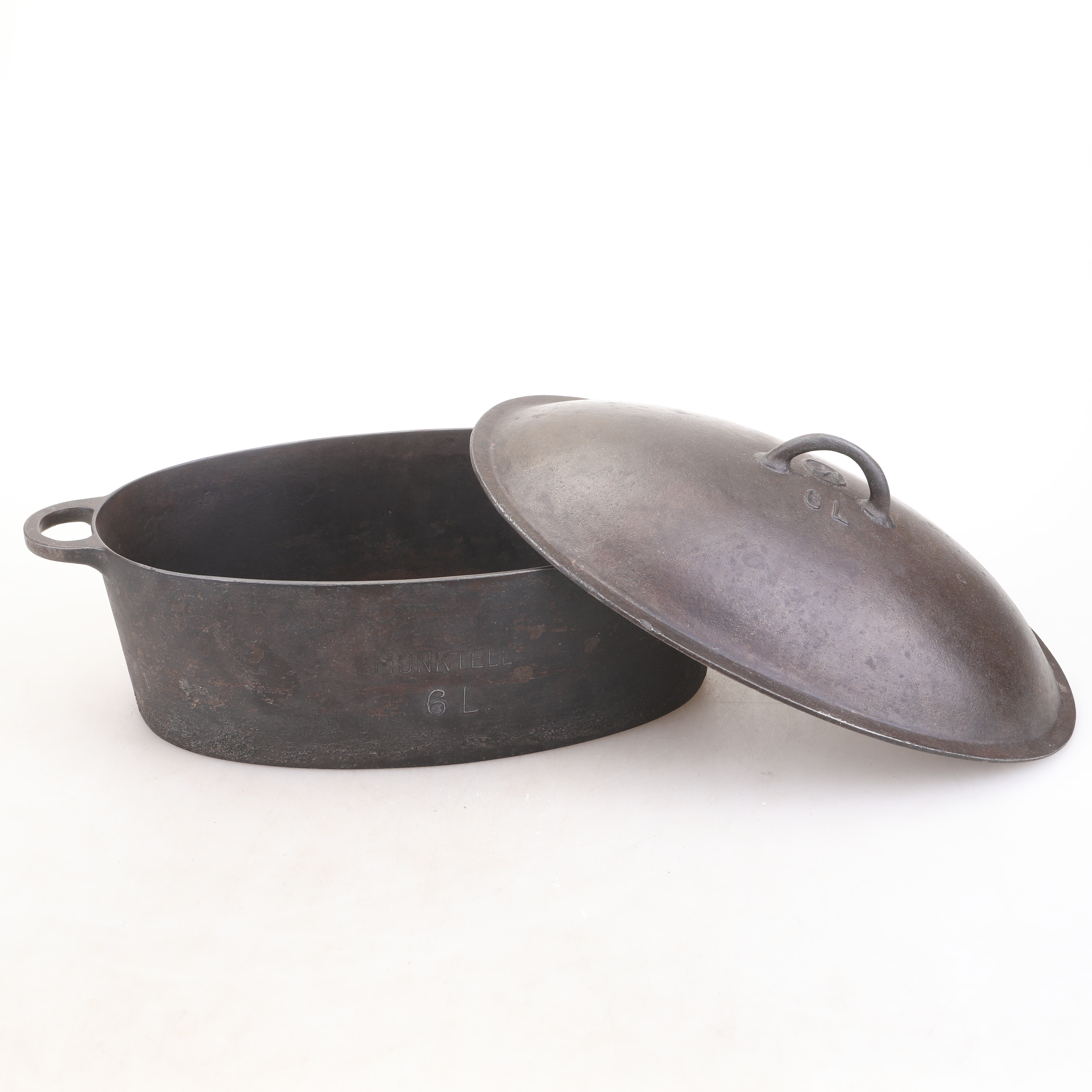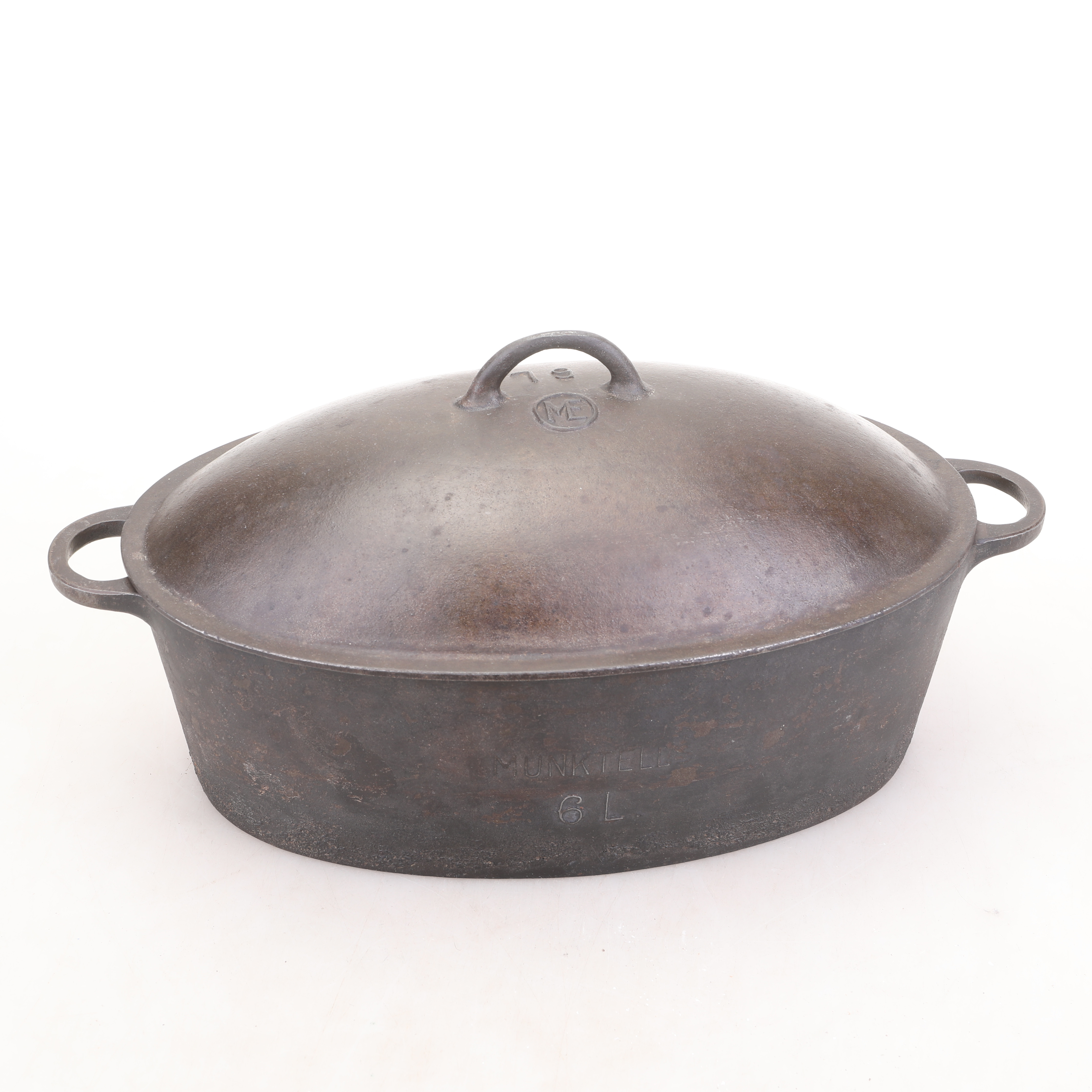 3471477. CAST-IRON CASSEROLE, marked ME.