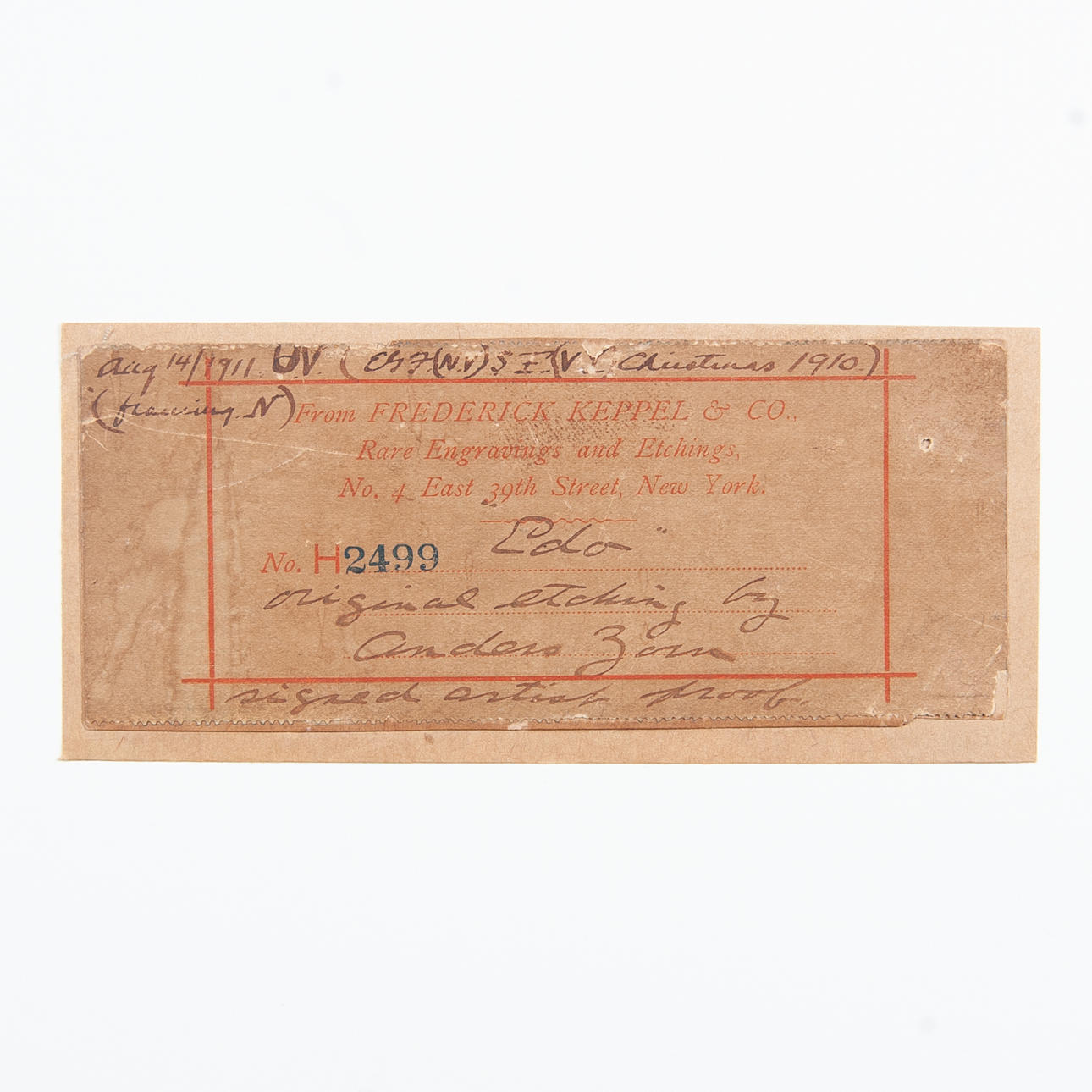 Back cover with gallery/purchase label 1911.