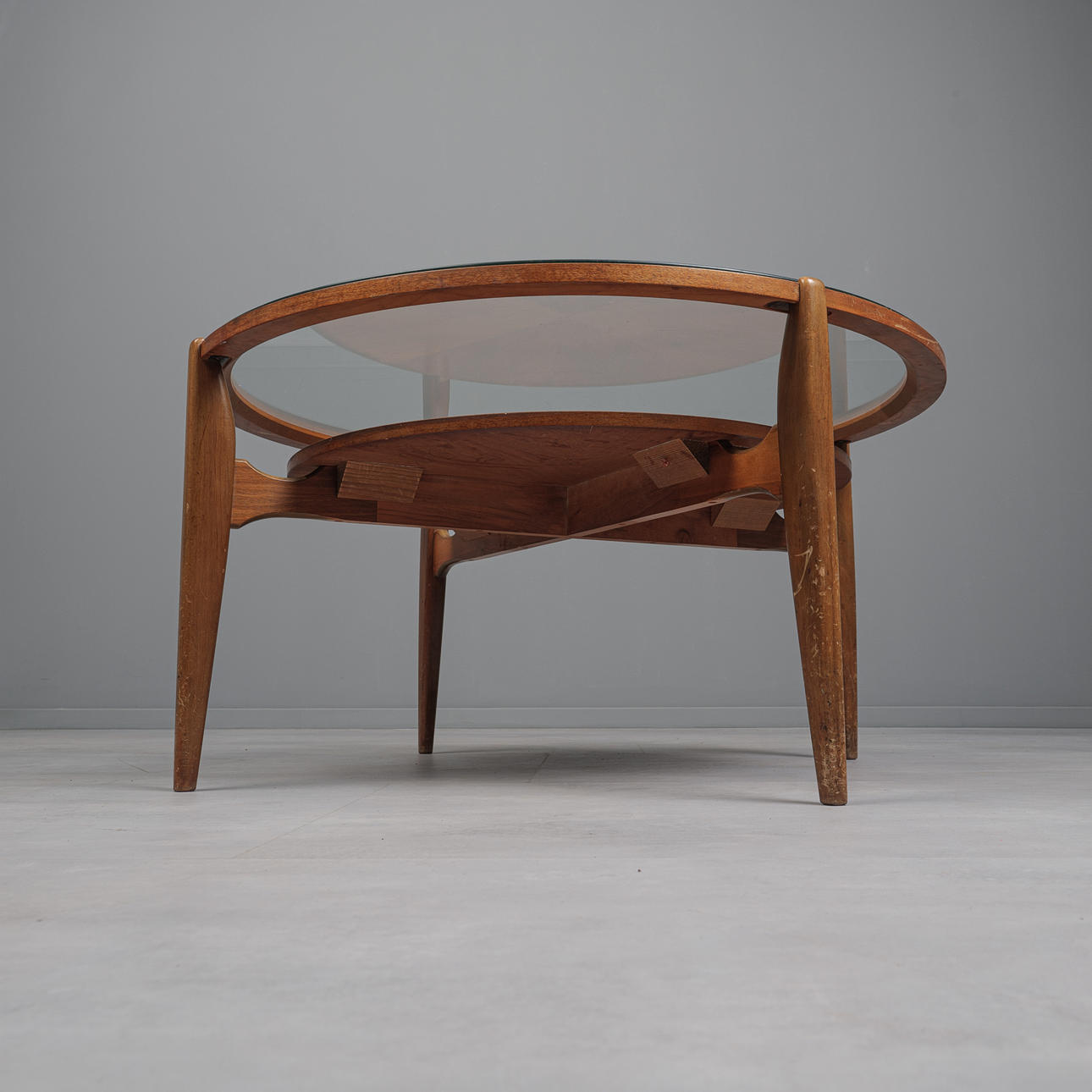 3482687. Wilhelm Renz, coffee table/side table, walnut, glass, 1960s, Germany.