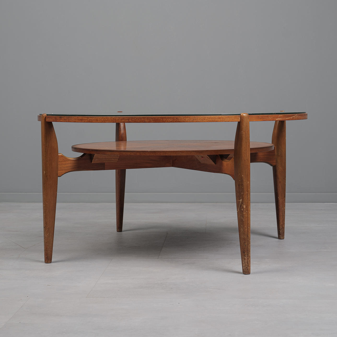 Age-appropriate signs of use and rubbing, scratches in places on the table top, partial scratches and minimal bumping in the wood.