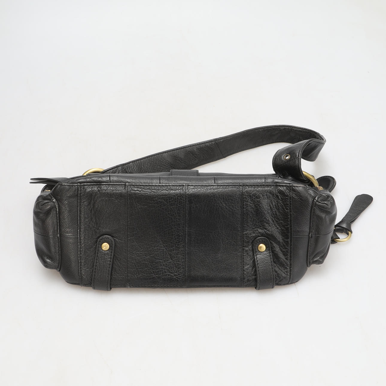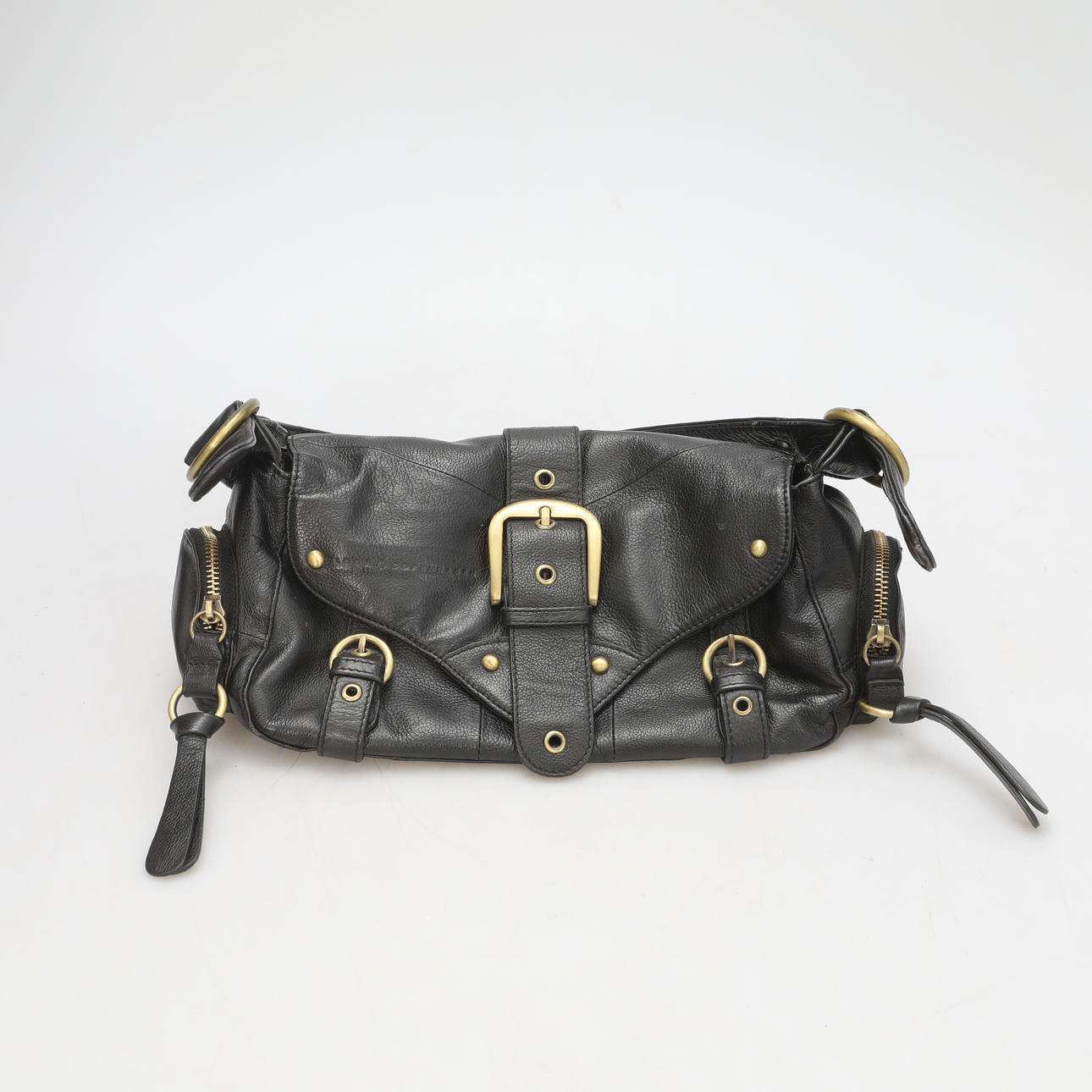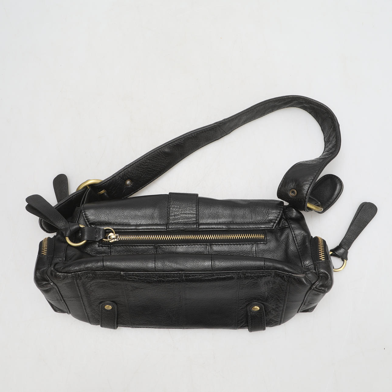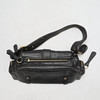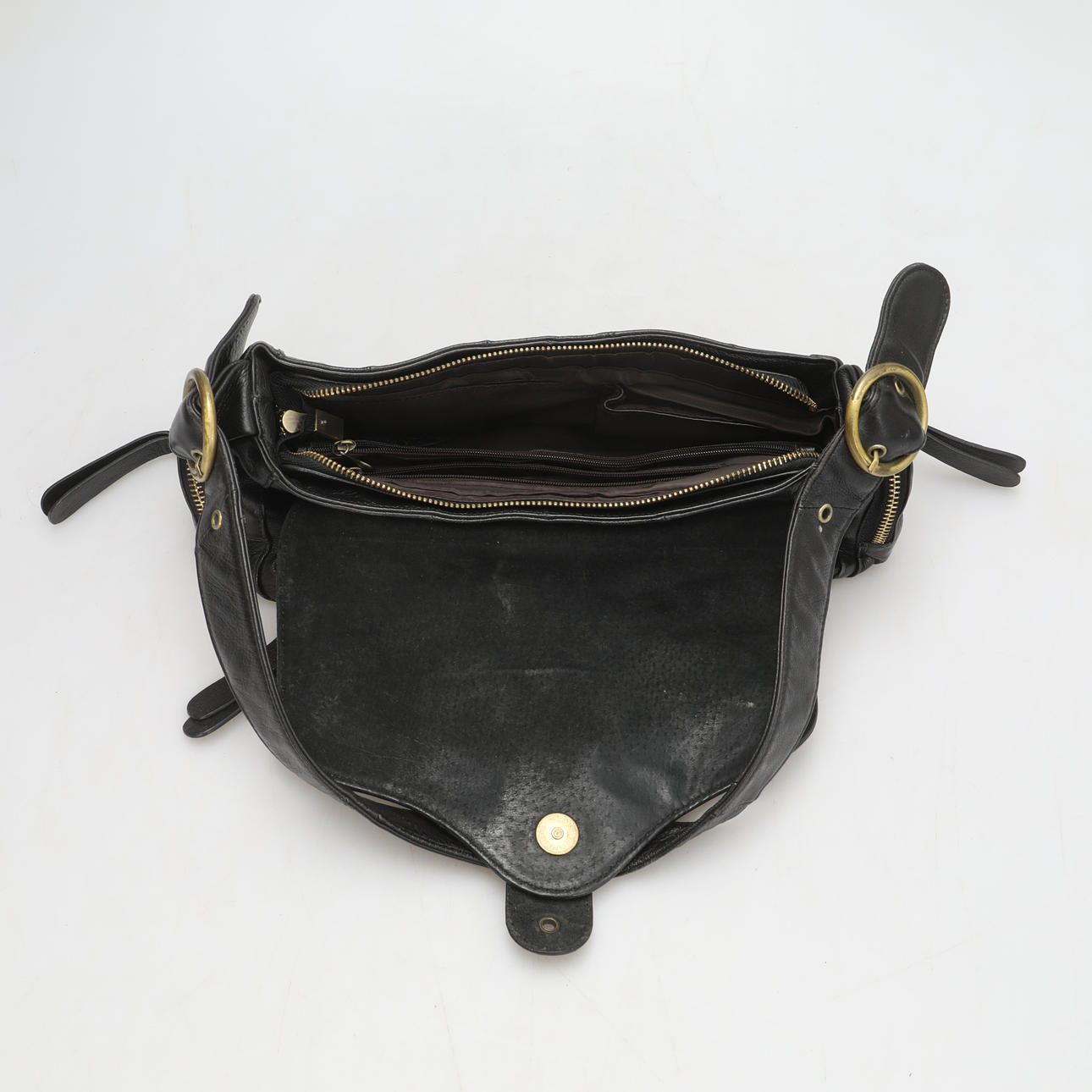 Black leather. Two inner compartments, one with zipper.