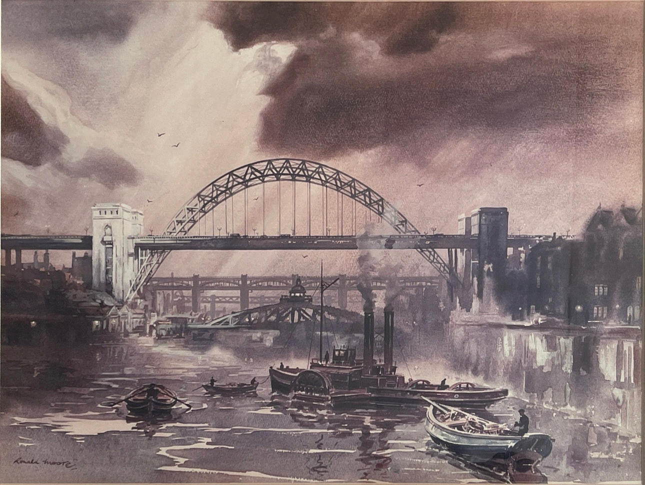 RONALD MOORE. TYNE BRIDGES WATERCOLOUR.