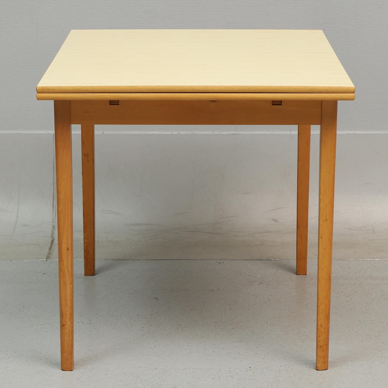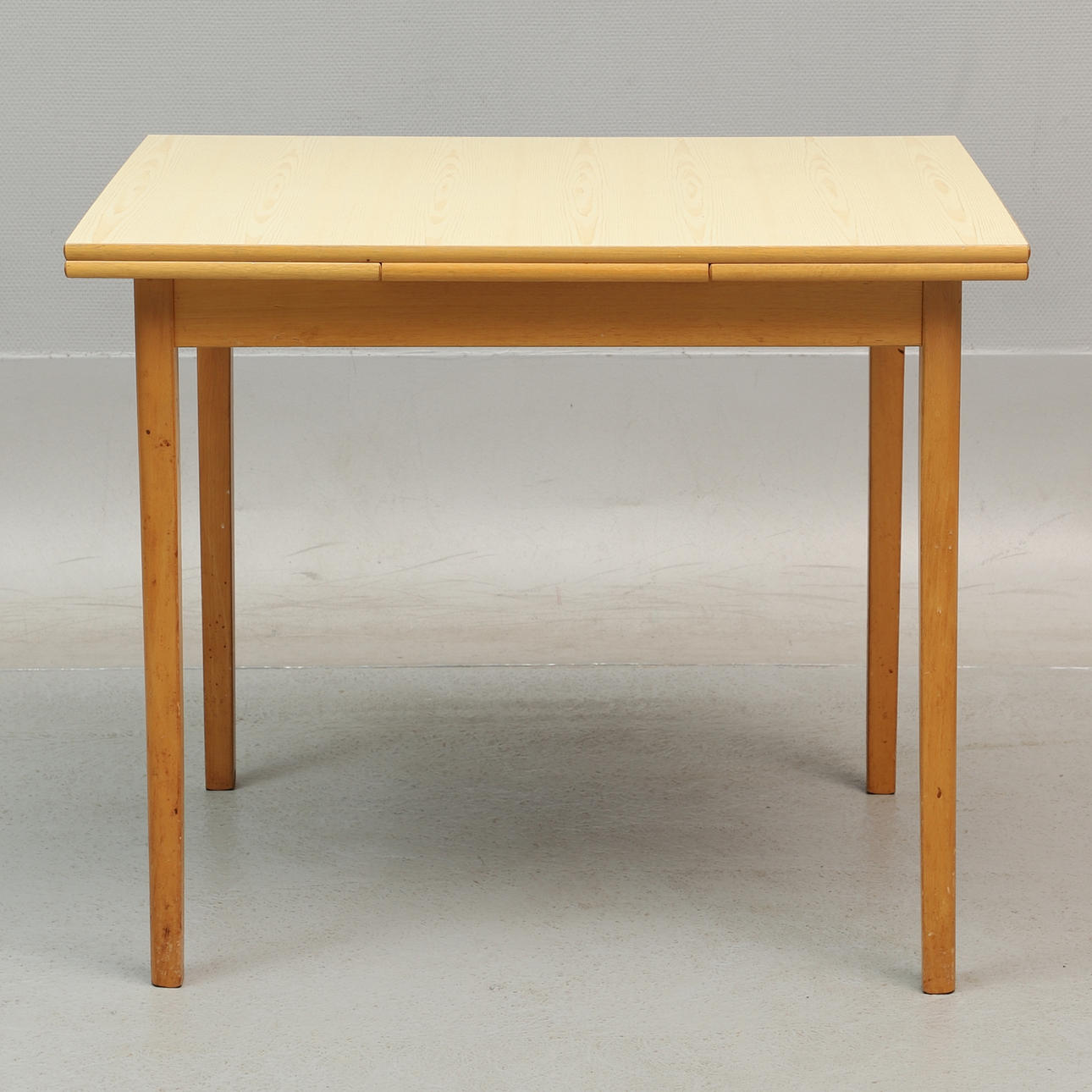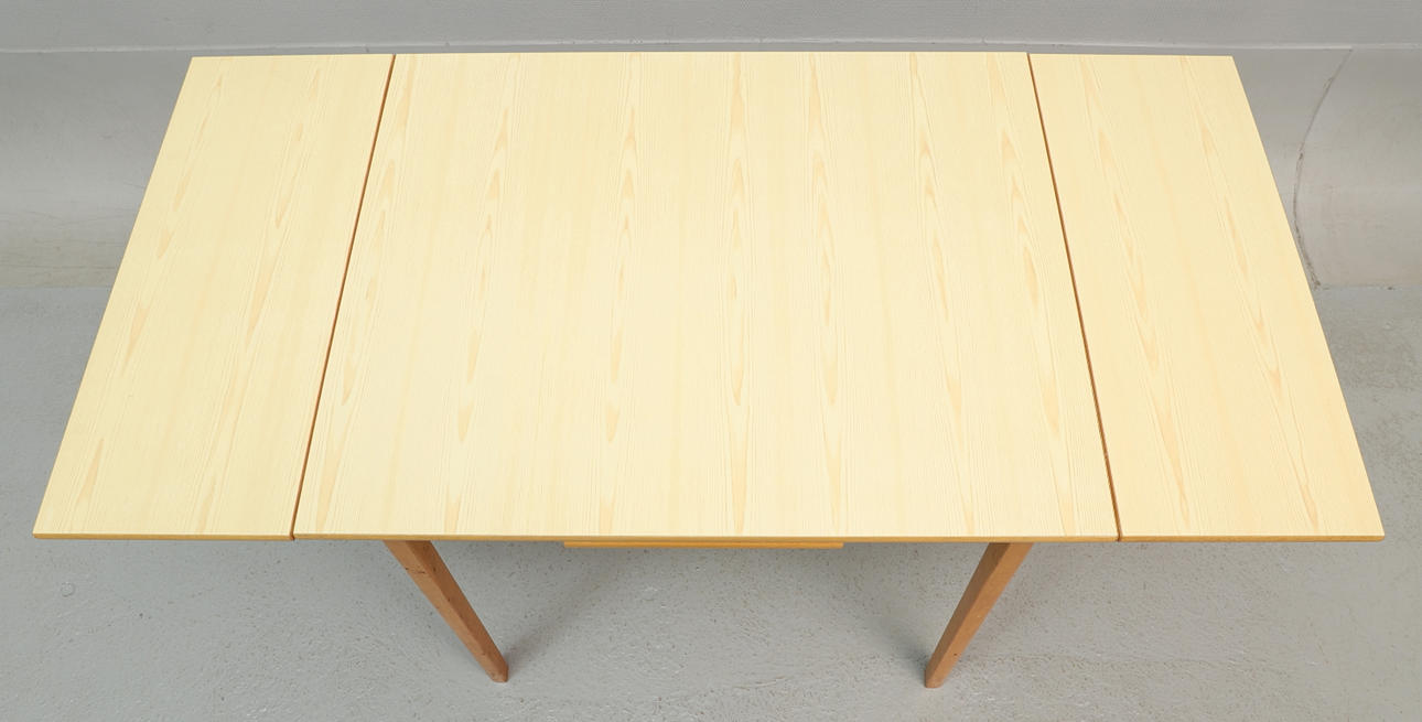 Perstorp disc. Length, incl. pull-out boards, approx. 148.5 cm. Length, excl. pull-out boards, approx. 89 cm. Width, approx. 74 cm. Height, approx. 73 cm.