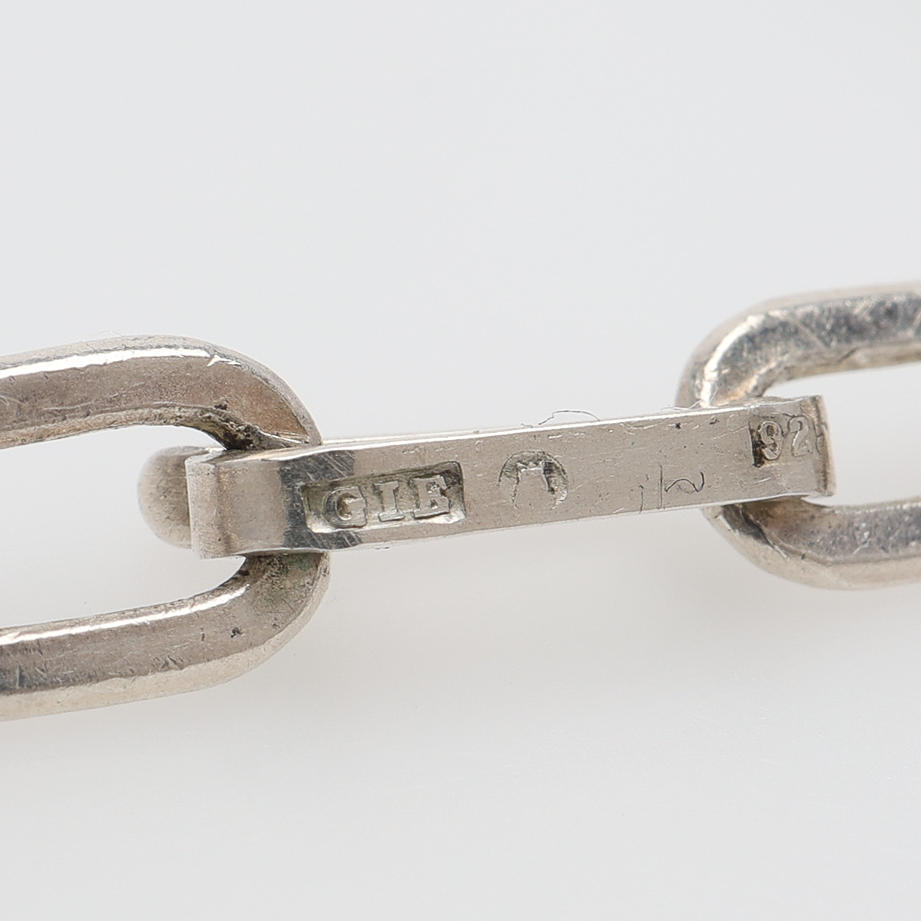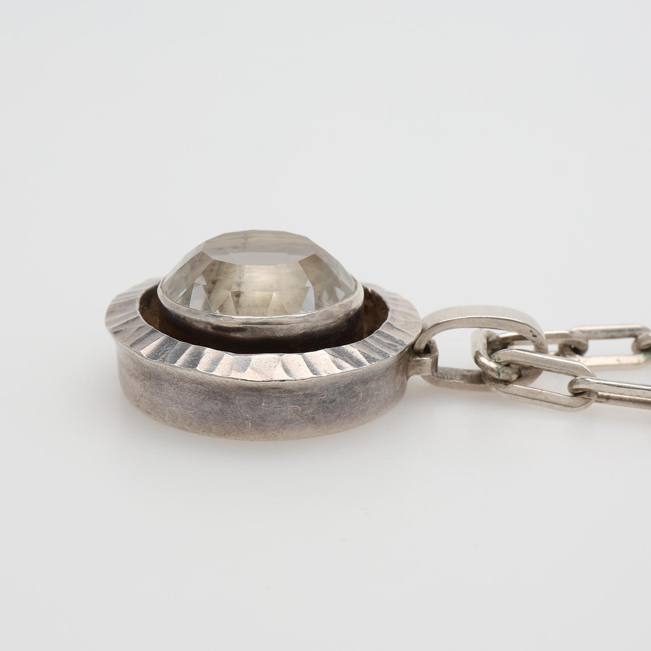 Sterling silver, pendant stamped Stockholm 1977, with round faceted spinel, diameter approx. 20 mm, pendant diameter 31 mm and necklace made of anchor link with hook clasp, length 81 cm.