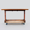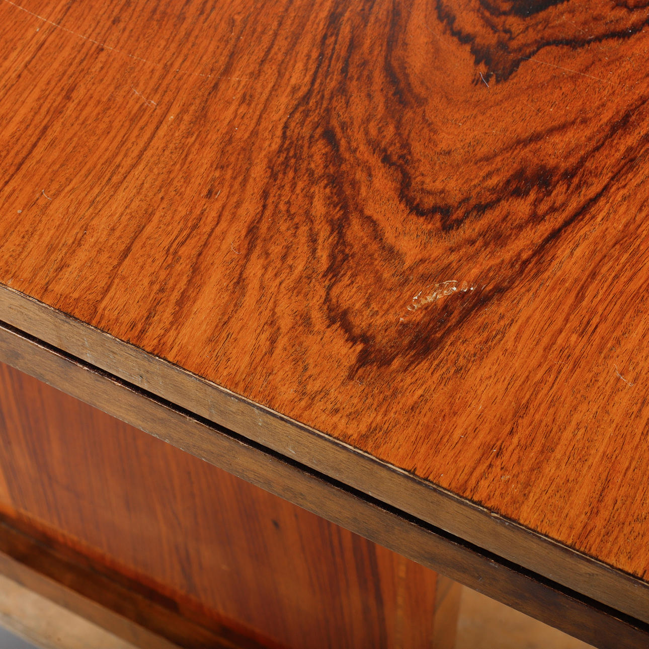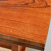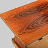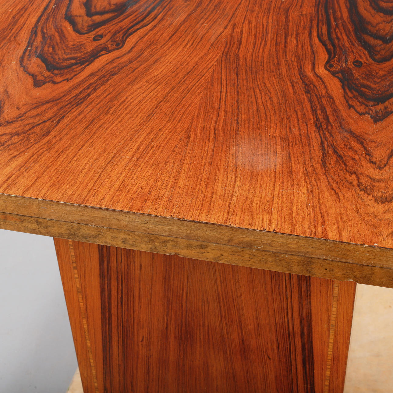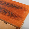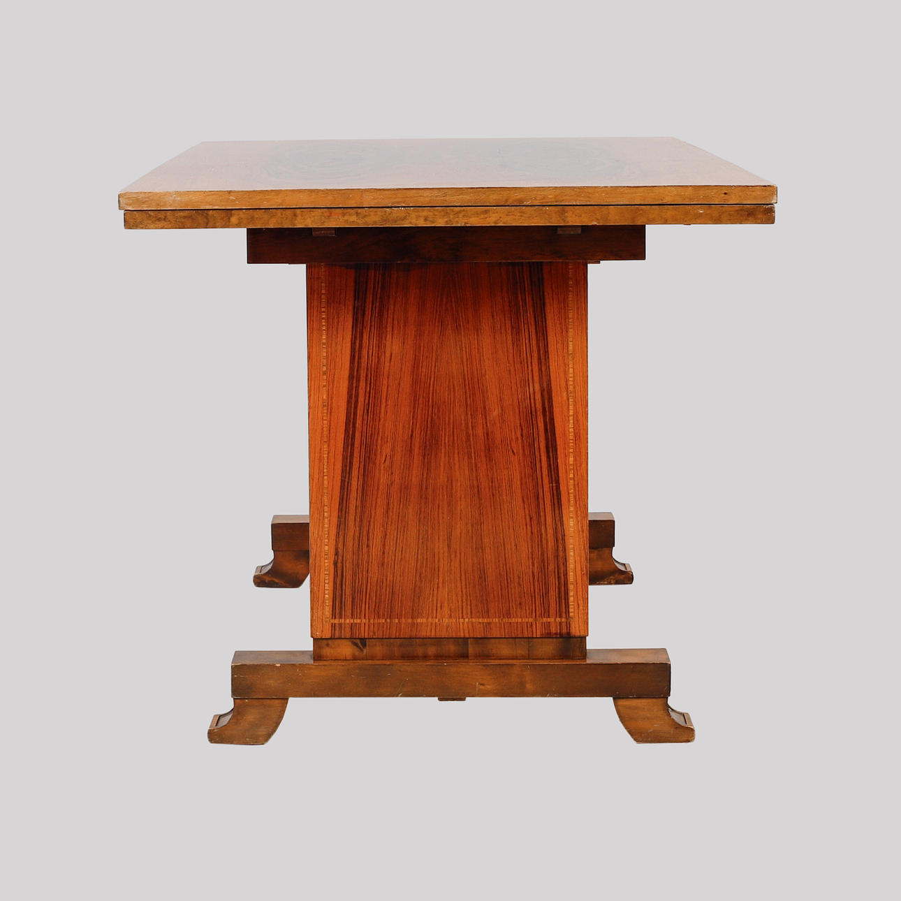 mixed woods in birch and zebrano. Retractable discs. Length 145 + 55x2, width 83, height 77 cm.