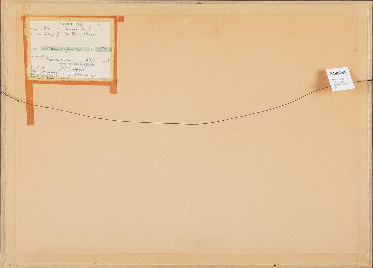 According to label on verso purchased at Halmstadgruppen retrospective exhibition, Stockholm 1968.