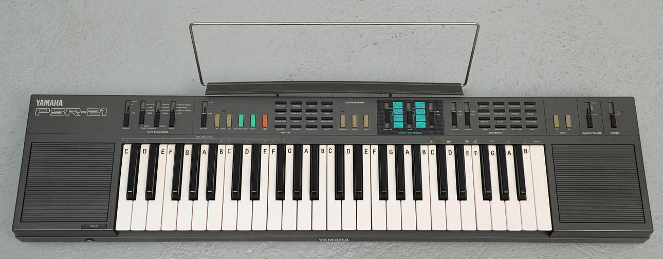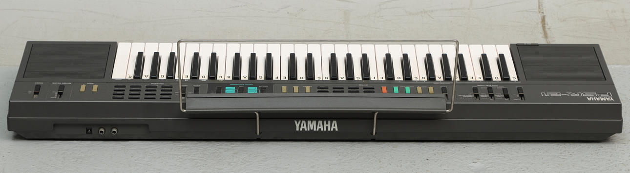 Digital FM Synthesizer. Height approx: 78 cm. Dimensions approx: 97x23 cm. Two sheet music books.