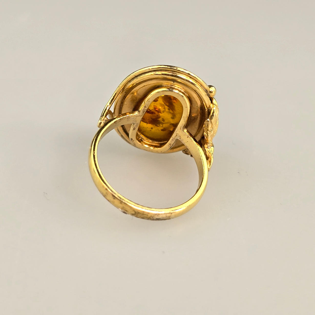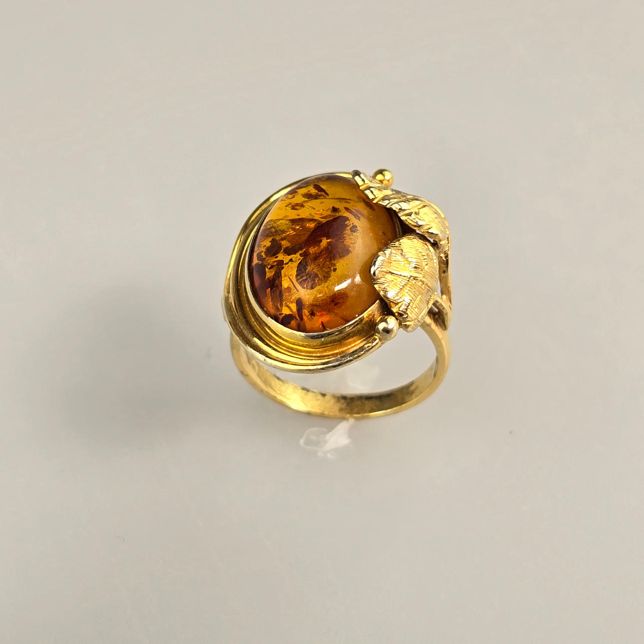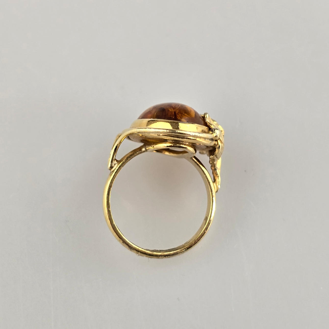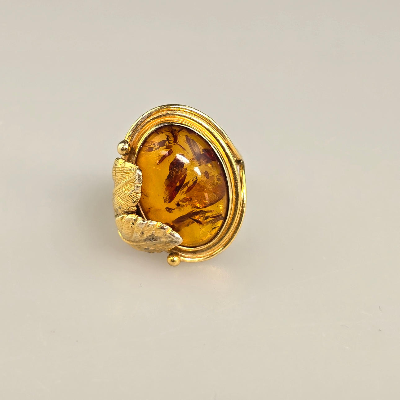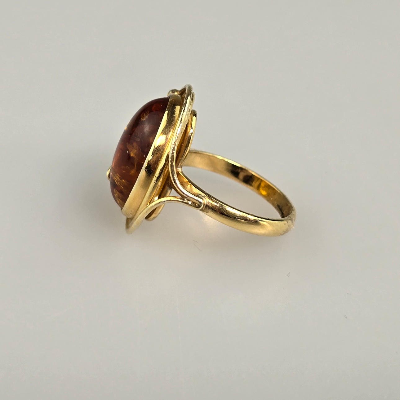 Amber ring - 925 silver/gold-plated, stamped on the outside, amber of approx. 18 x 12 mm, ring size approx. 17.5 mm, weight approx. 6.1 g.
