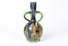 The glazed art pottery vase with twin handles, marked 'MADE IN BELGIUM 320', 29cm height.