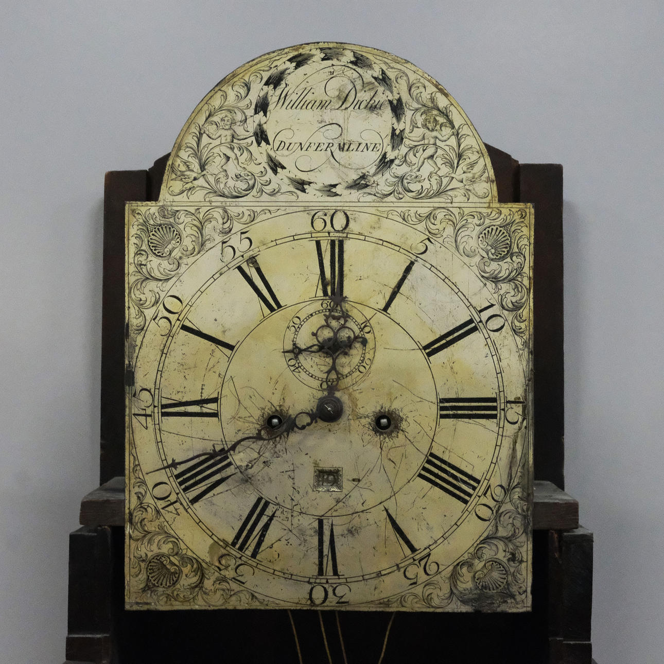 WILLIAM DICKIE FLOOR CLOCK, DUNFEER MLINE, 1800'S.