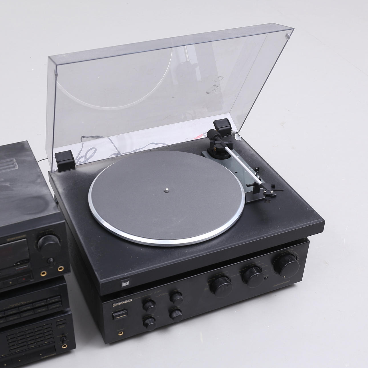 Pioneer CT-S310 CD/CASSETTE player Pioneer F-201L FM/AM tuner Pioneer PD-S601 CD player Pioneer A-301 amplifier Dual CS-415-1 Turntable.