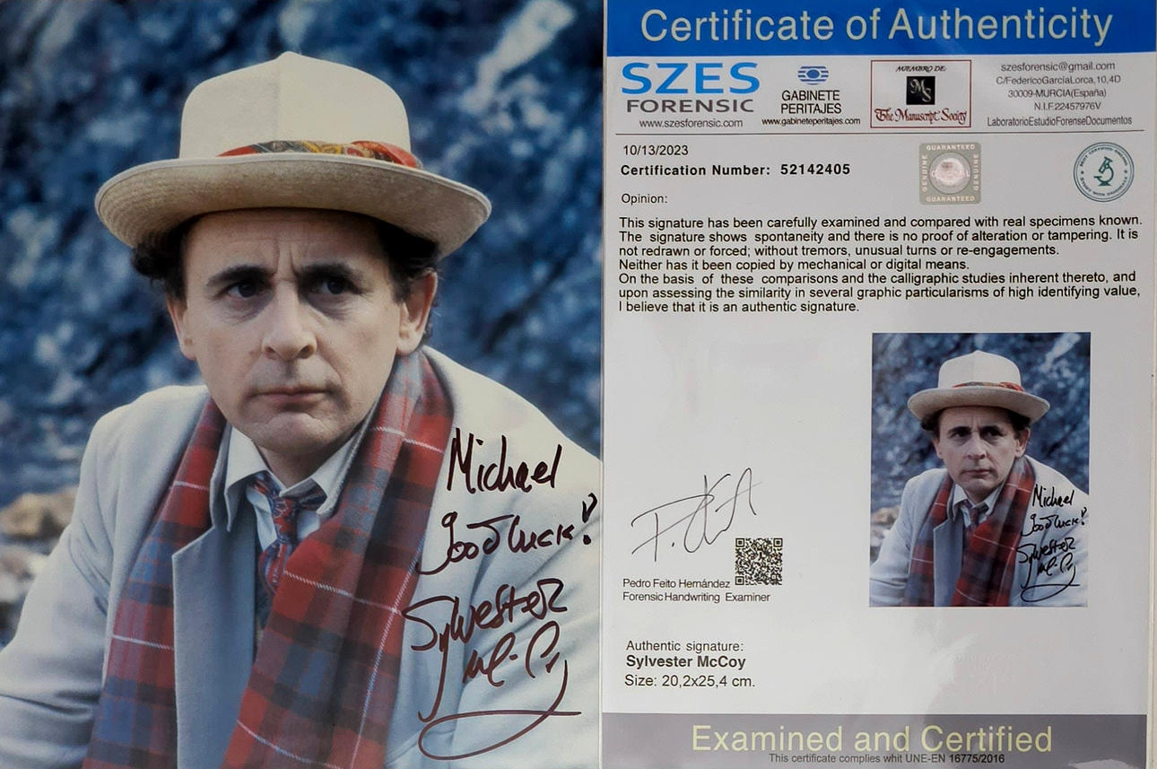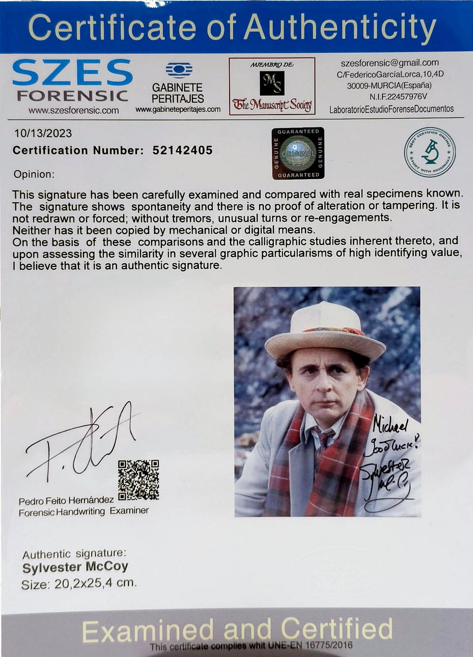 SYLVESTER MCCOY. DEDICATED AUTOGRAPH ON PHOTOGRAPHY.