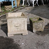 TWO RECONSTITUTED STONE SQUARE SECTION GARDEN PLANTERS.
