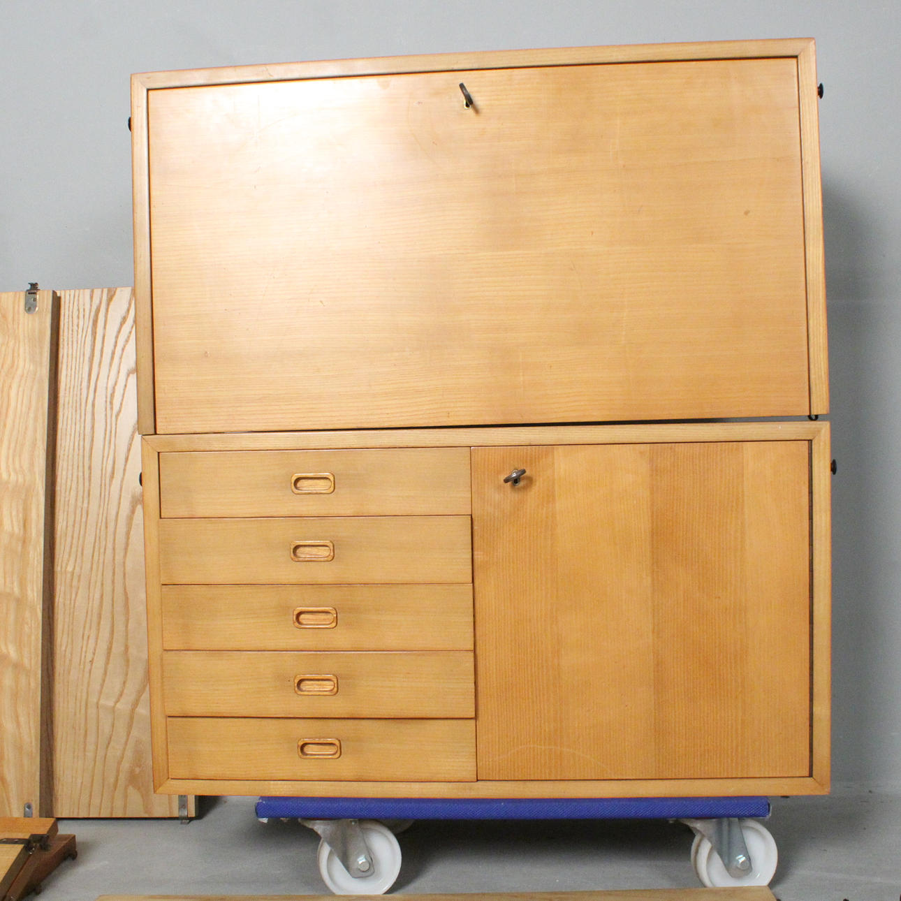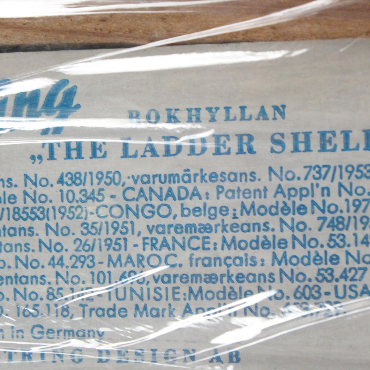 Shelving system consisting of 2 containers, 16 boards and 13 ladders, with manufacturer's label,