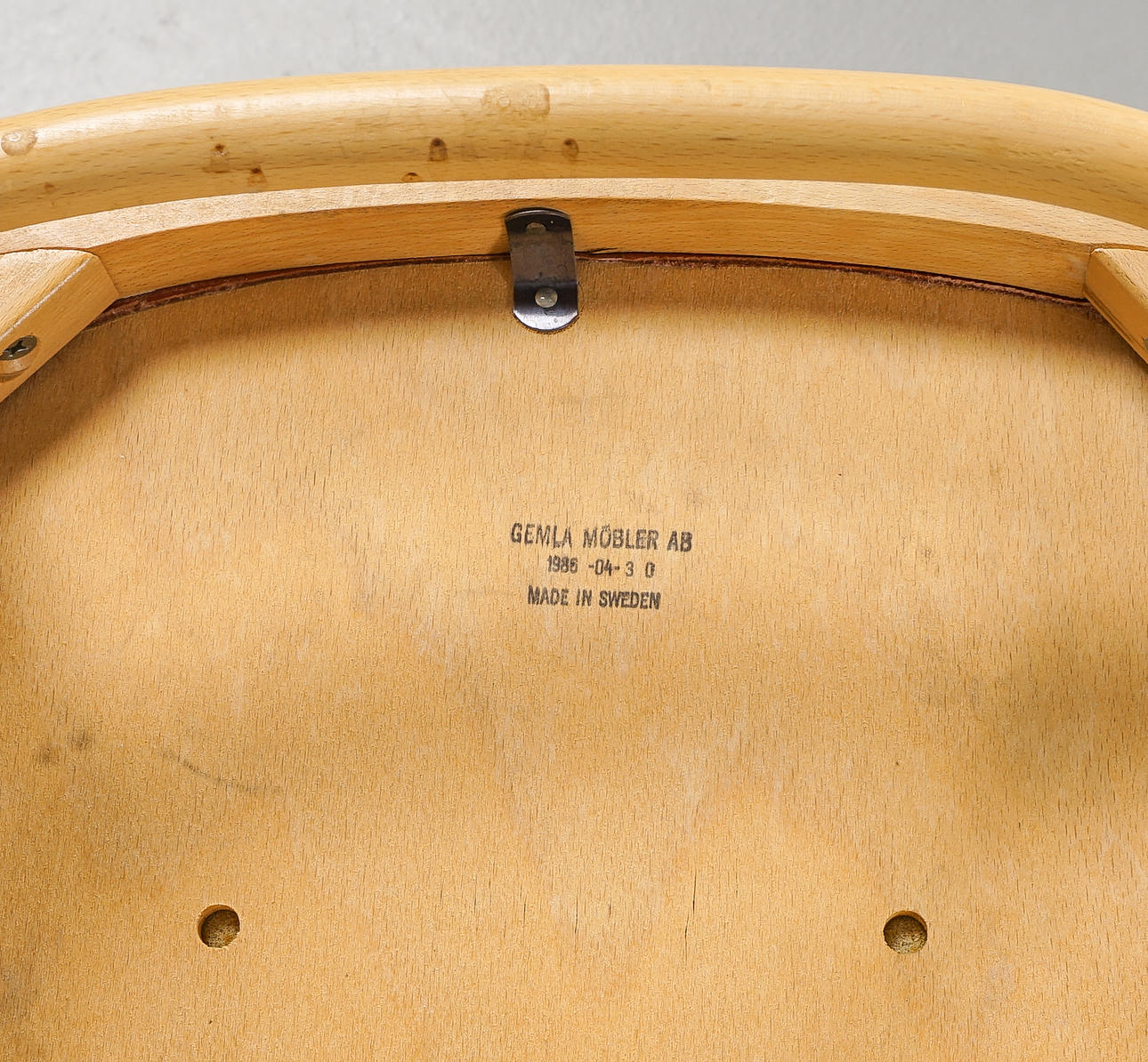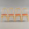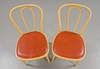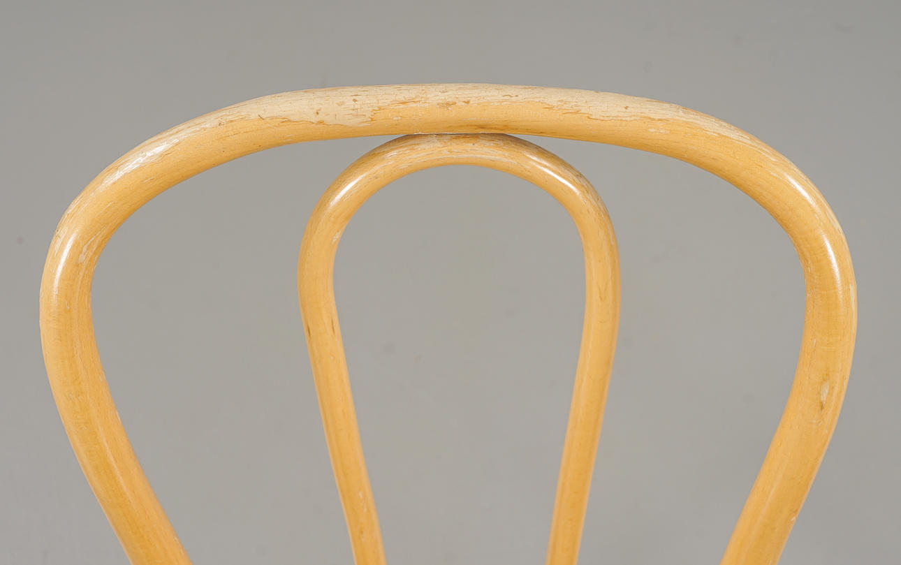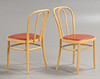 Beech/bent wood, seats with red leather upholstery. Dated 1986