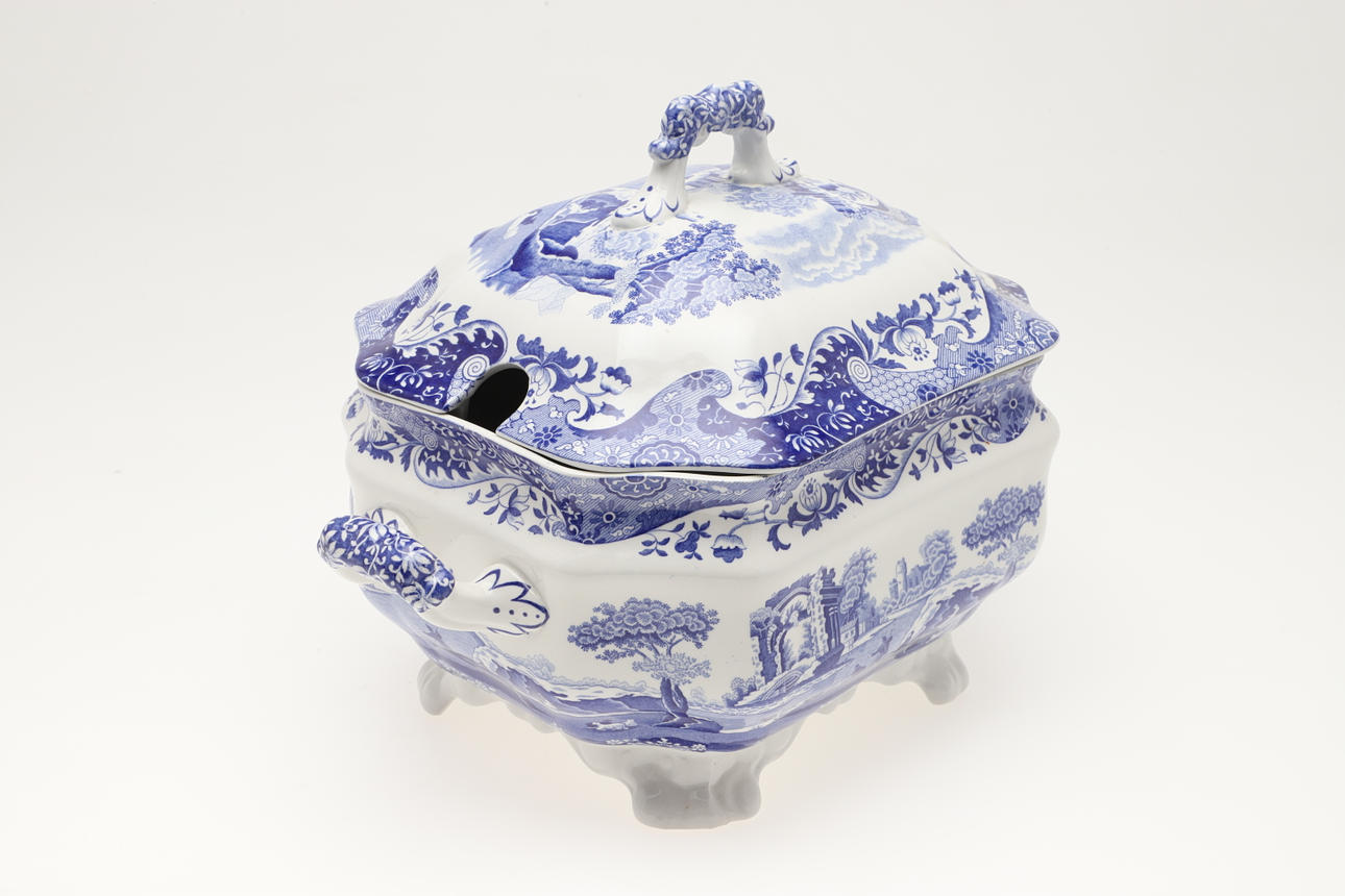 A SPODE BLUE ITALIAN PATTERN SOUP TUREEN AND COVER.
