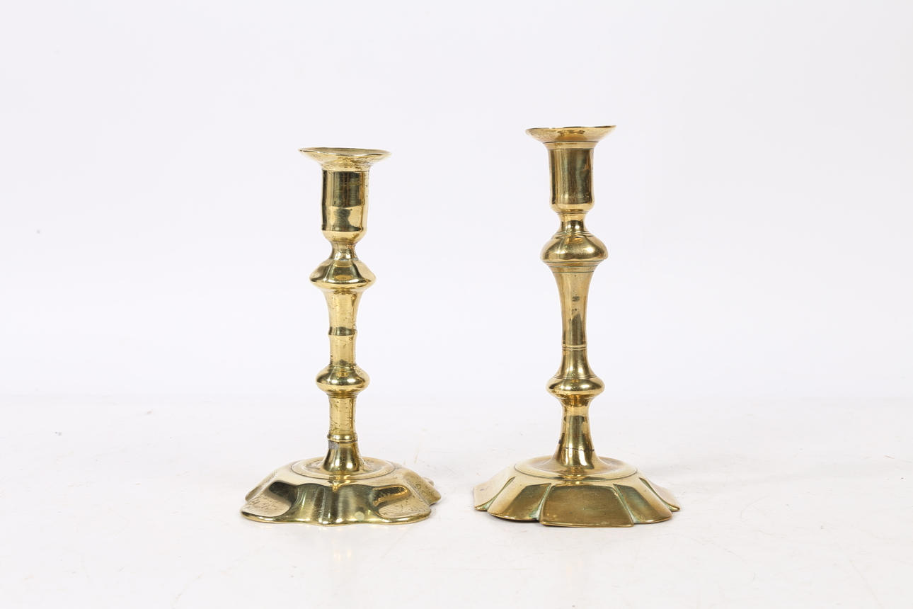 3530463. TWO GEORGE II BRASS CANDLESTICKS, CIRCA 1740-50.