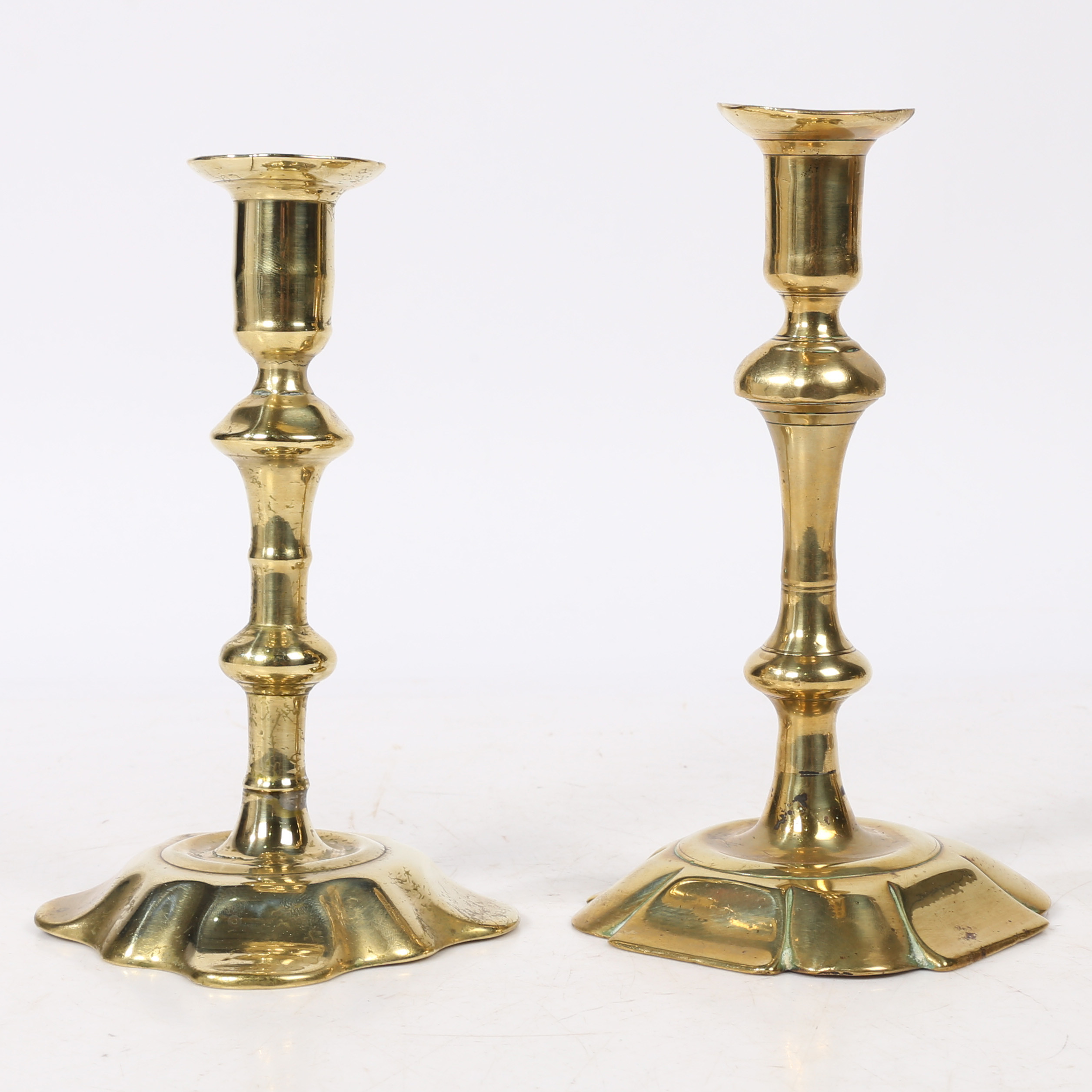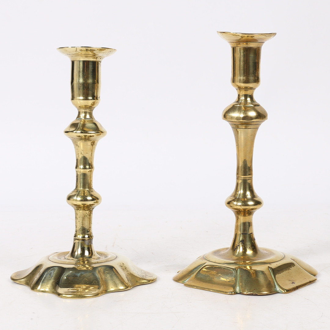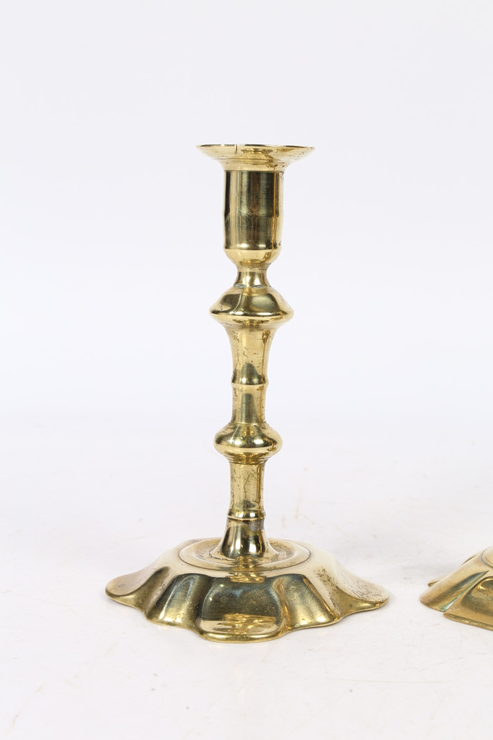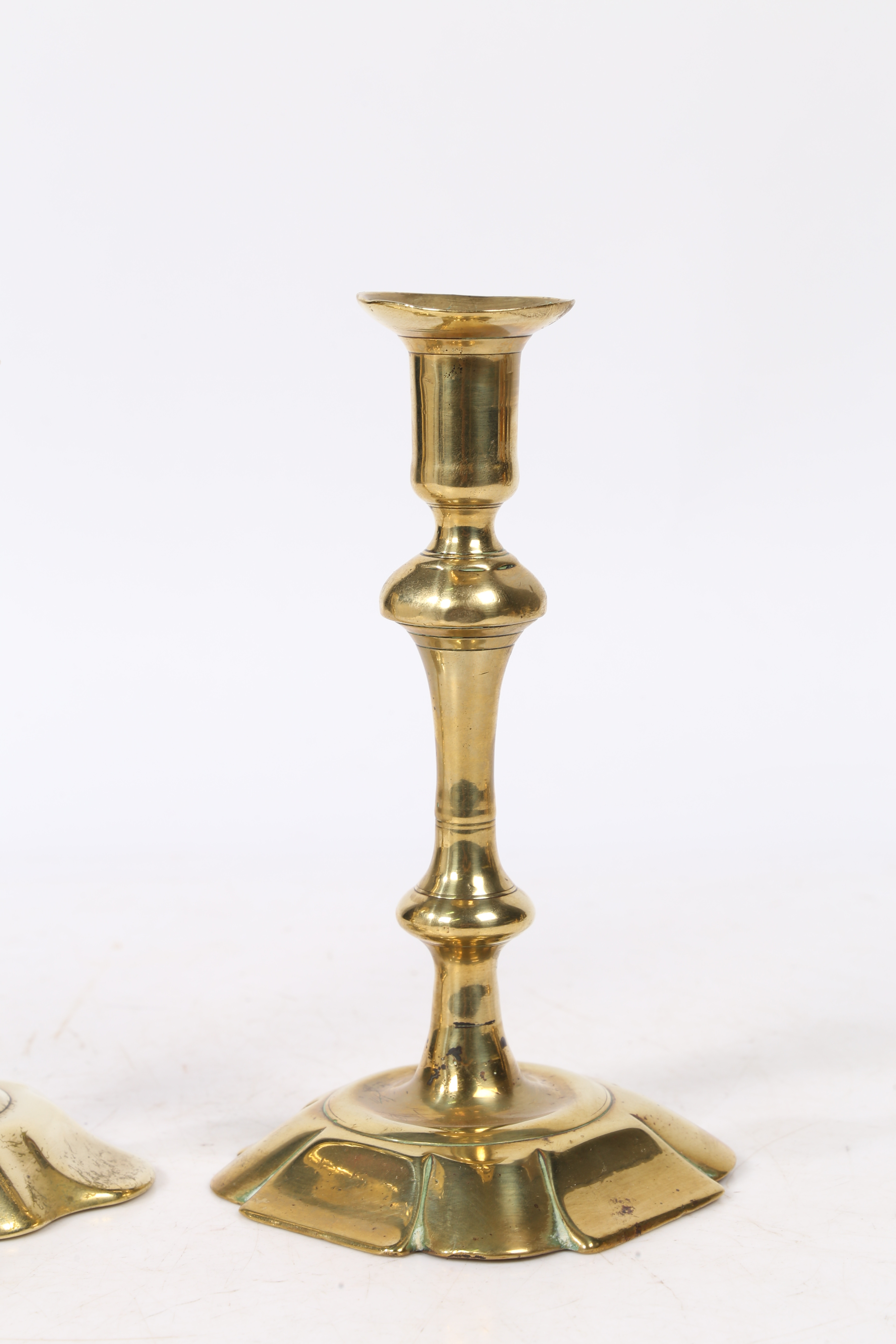 3530463. TWO GEORGE II BRASS CANDLESTICKS, CIRCA 1740-50.
