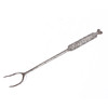 With two tines, the plain stem flattening to a geometric line decorated handle, with punched date ’75’ and ownership triad ‘I’ over ’TL’, with heart terminal, 50cm long.