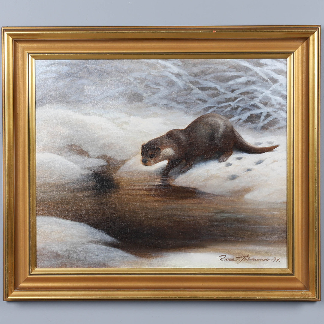 3544157. RUNE S JOHANSSON. “Otter” oil on canvas, signed.