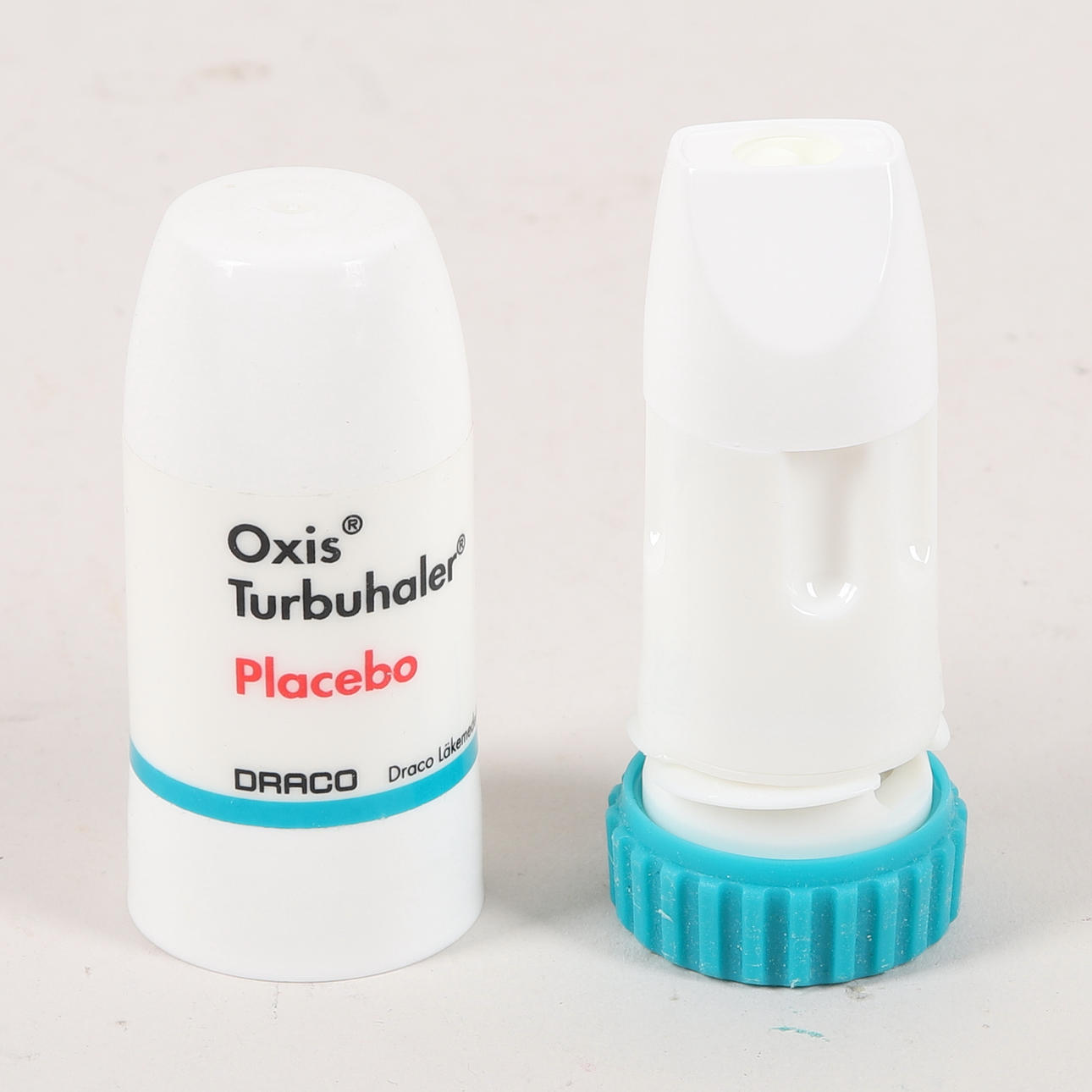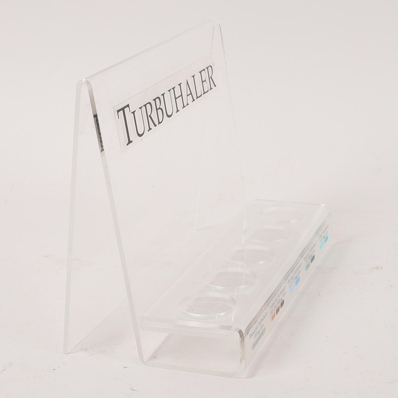 Display stand with 4 inhalers. Dimensions: about 24x12x17.5 cm.