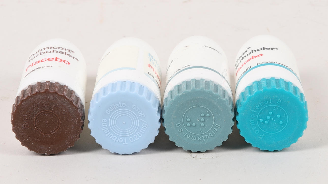 Normal wear and tear, surface dirt. An inhaler is missing.