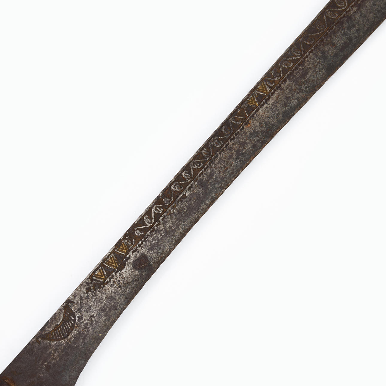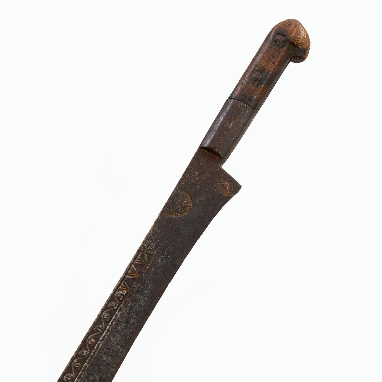 Wide back. relief decor with running dog and leaves. Rolling pin made of iron and wood. Blade length 74, total 86,5cm.