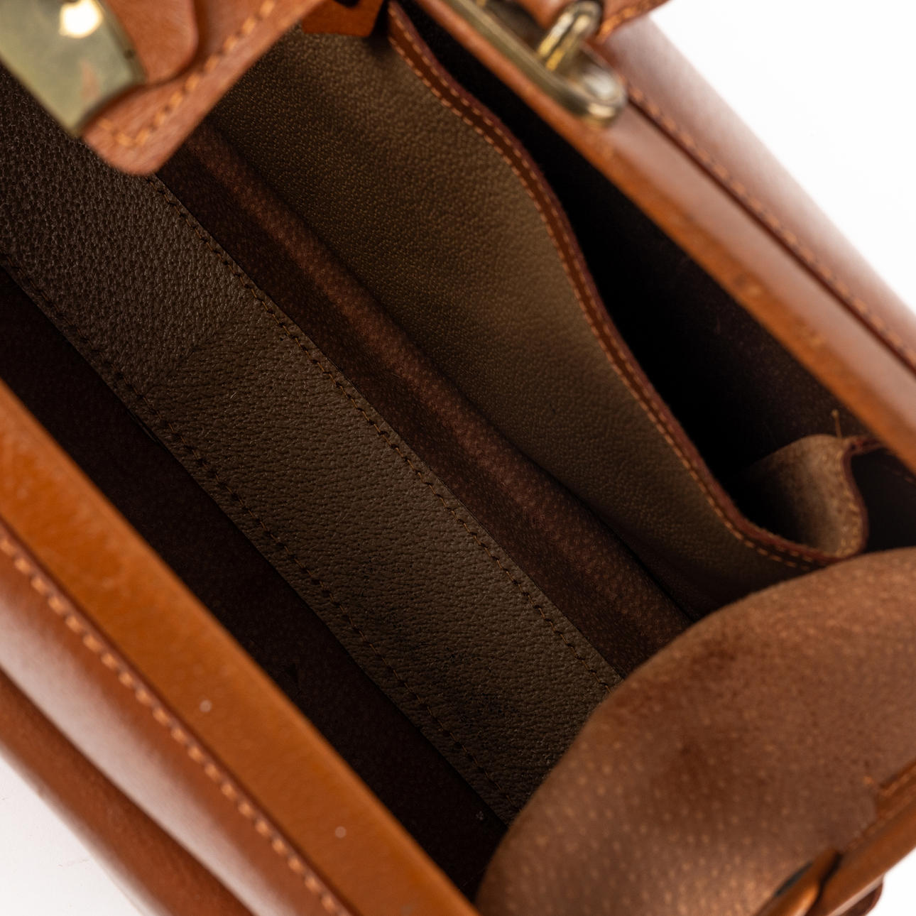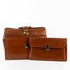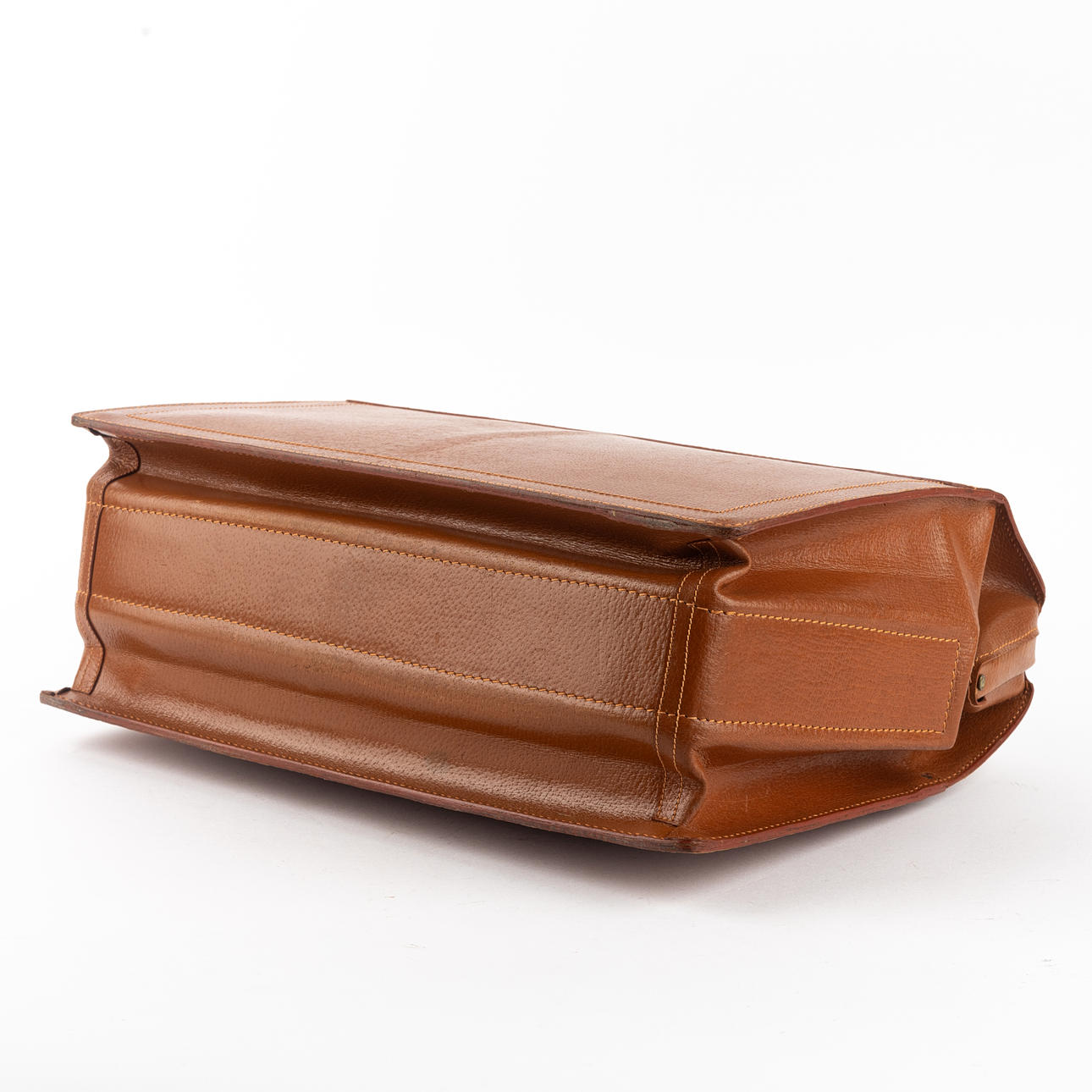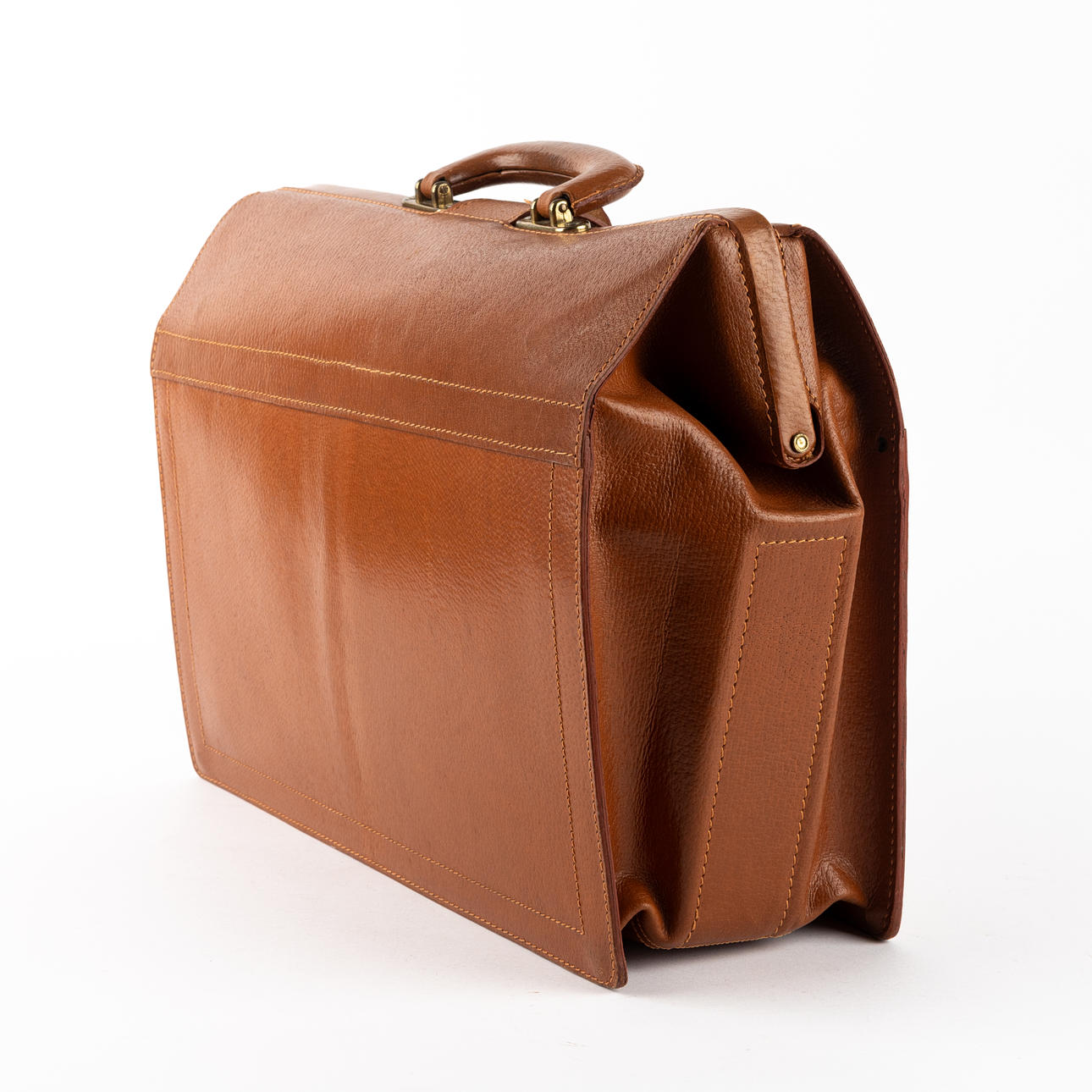 Front with 2 compartments, one lockable. Inside with compartments. Length approx. 43,5 height 32 and depth 16 cm.