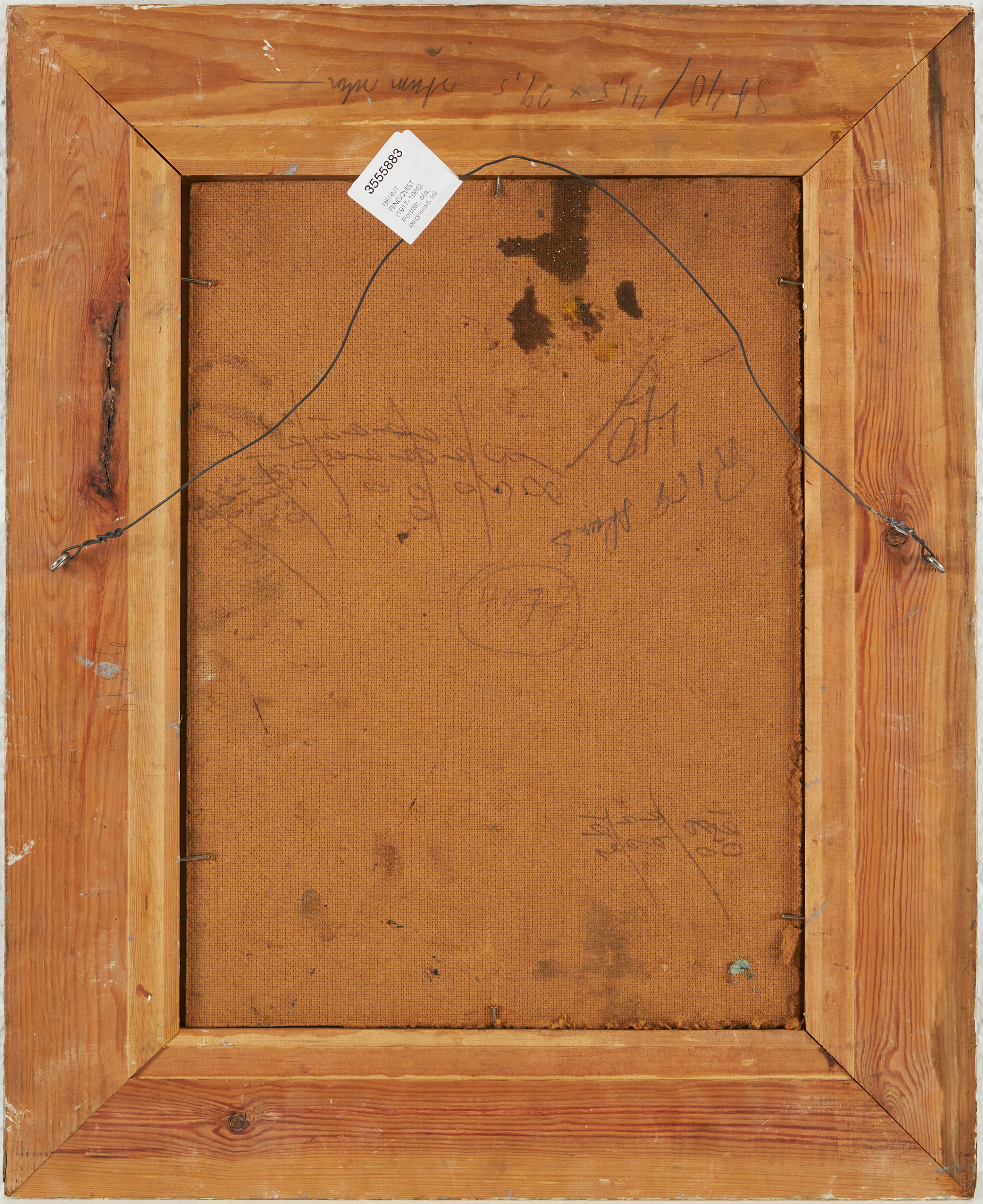 3555883. BERNT RINGQVIST (1917-1966). Portrait, oil, unsigned.