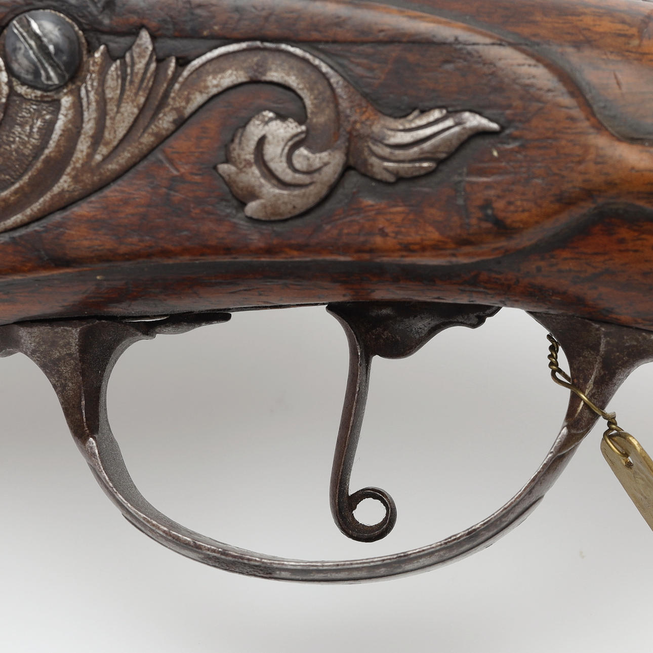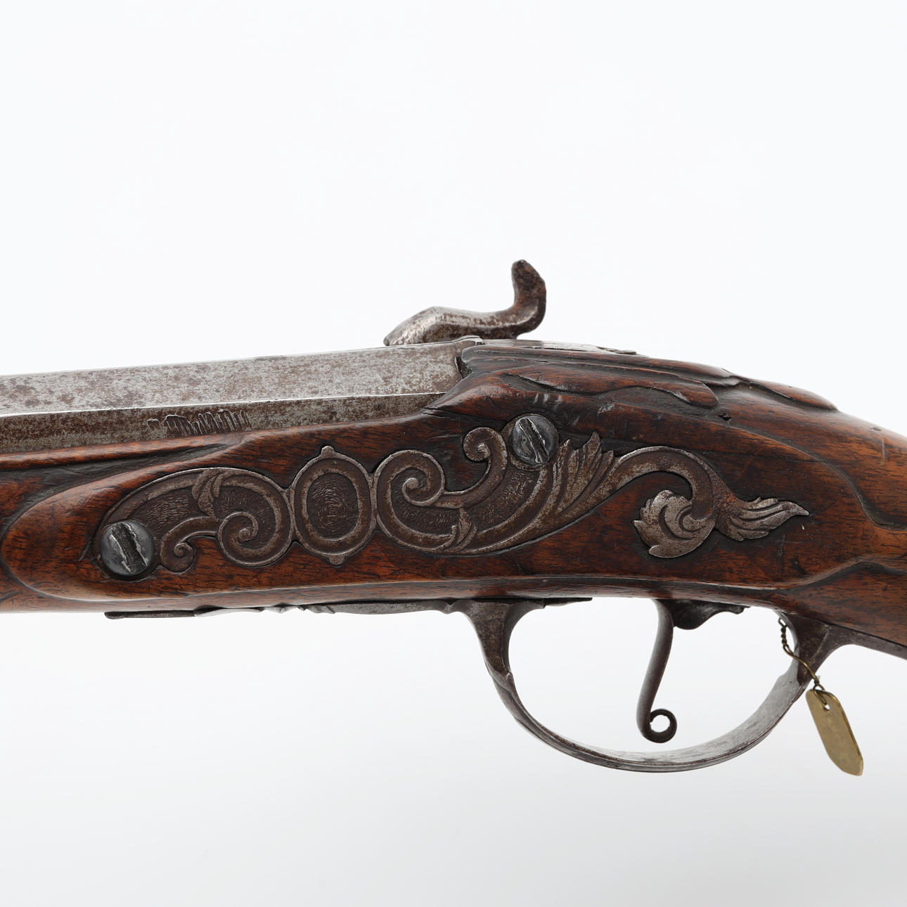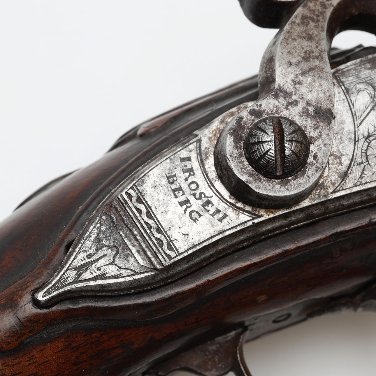 Provenance; The gun is probably manufactured by Jürgen Rosenberg active in Stralsund in 1670-1724, his son Joakim R later moved to Sweden.