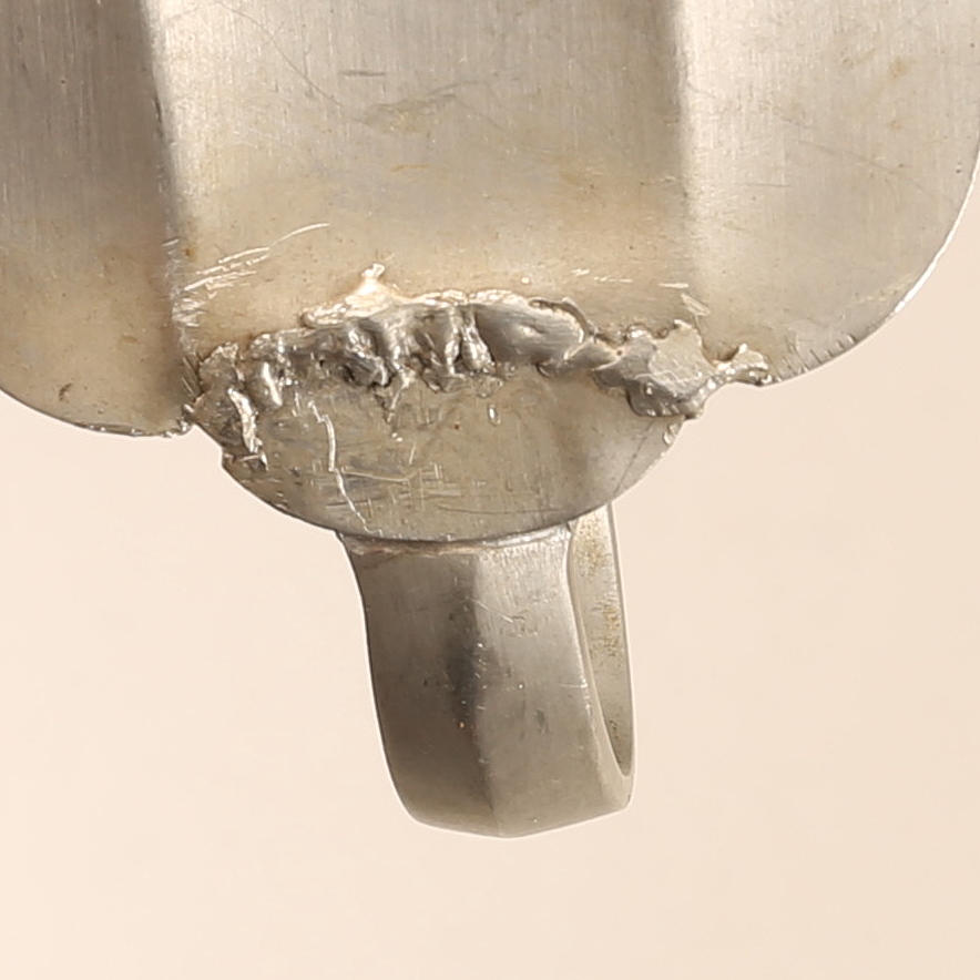 The crown of the mirror slightly bent. A sconce with mending.