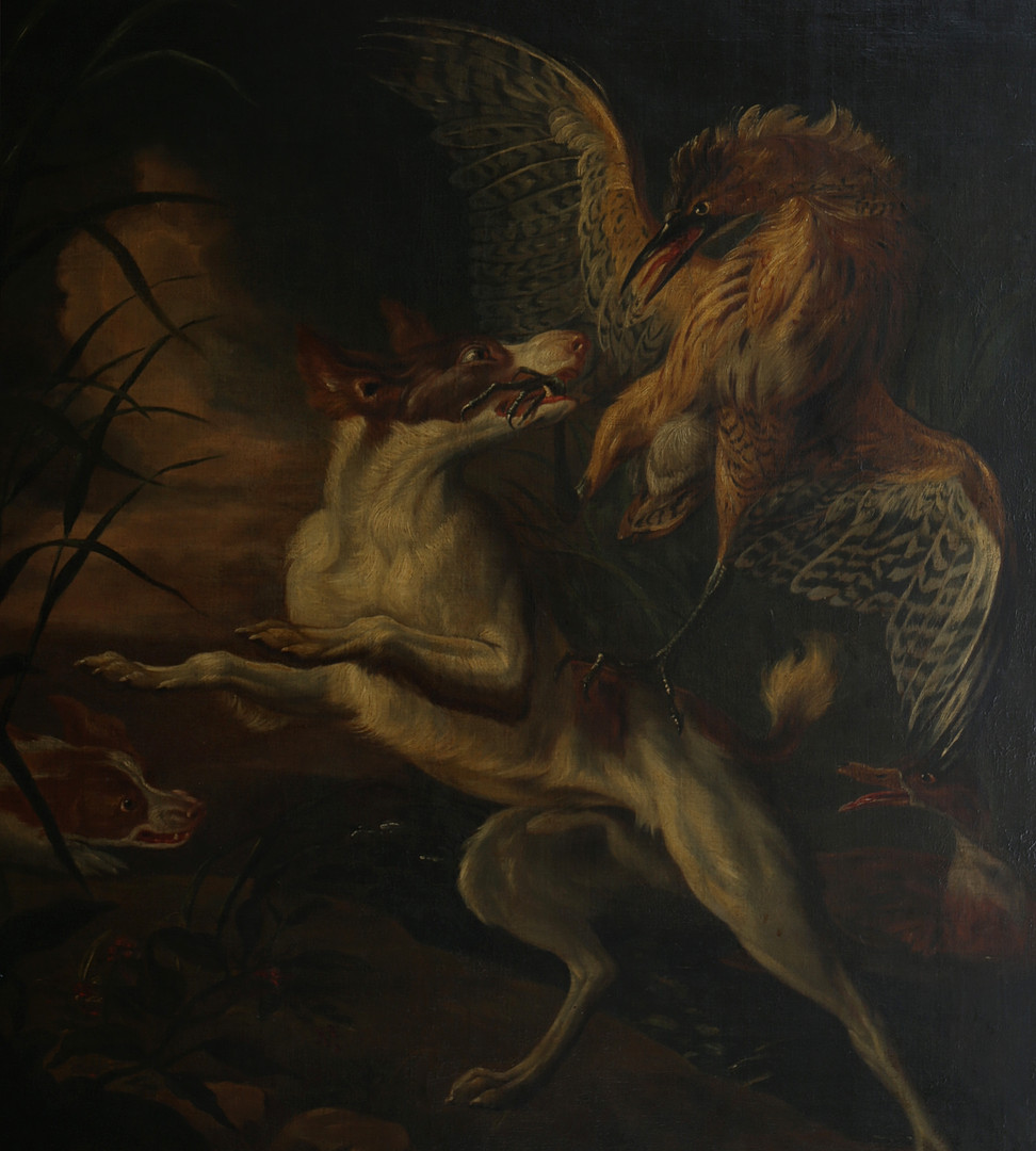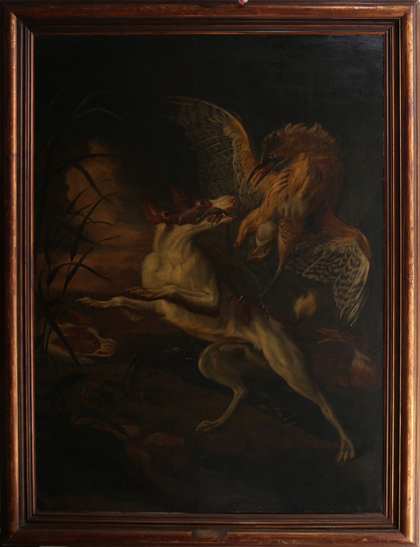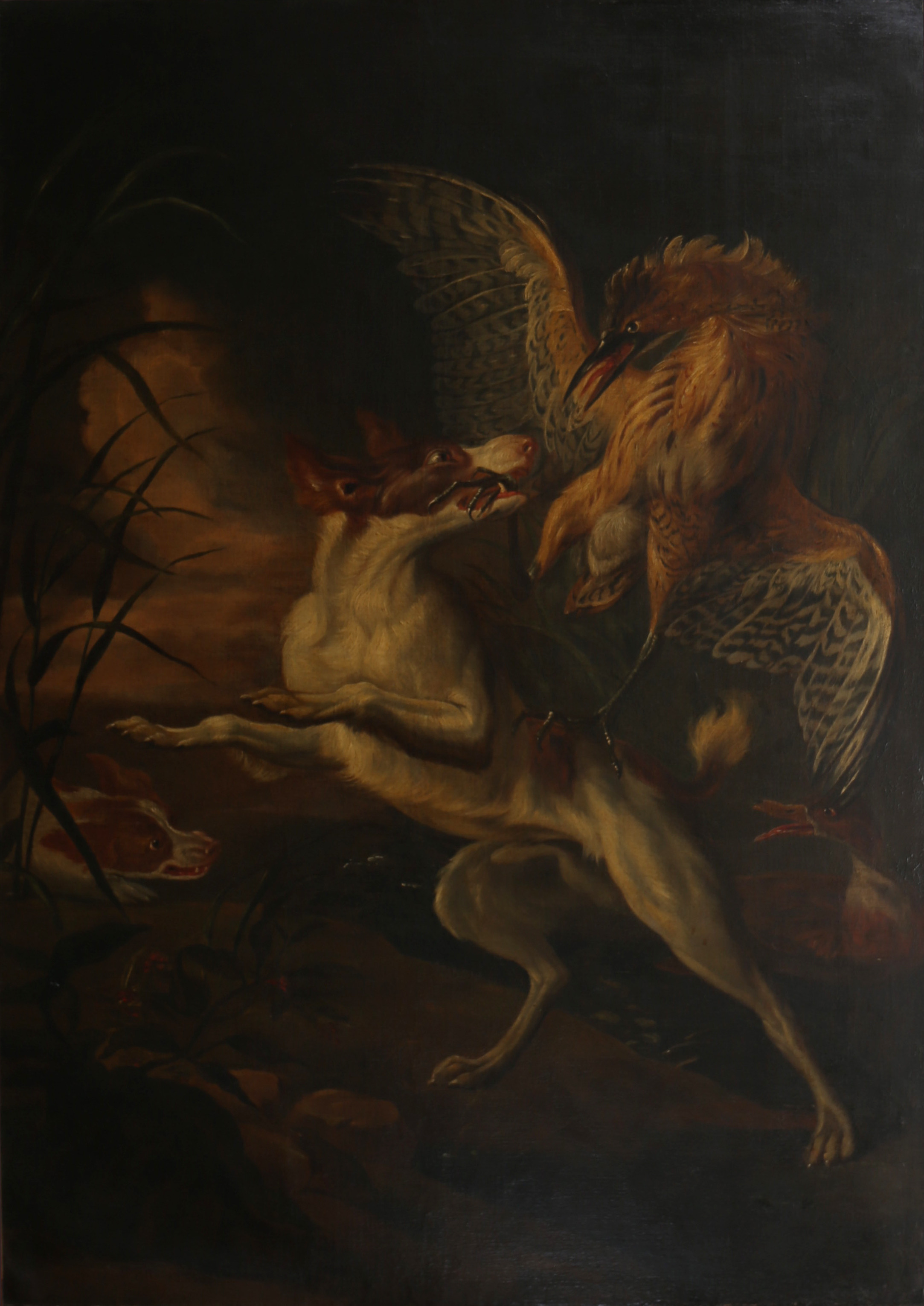 3561583. AFTER ABRAHAM HONDIUS. "Perro atacando a una garza".